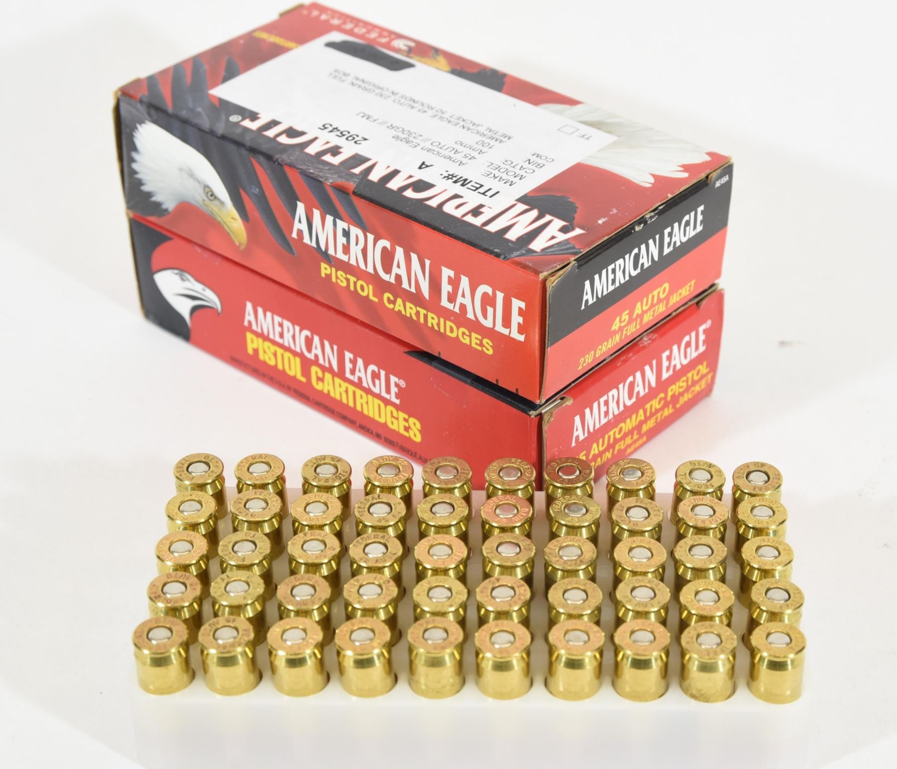 100 rounds American Eagle 45 Auto 230 GR, FMJ.