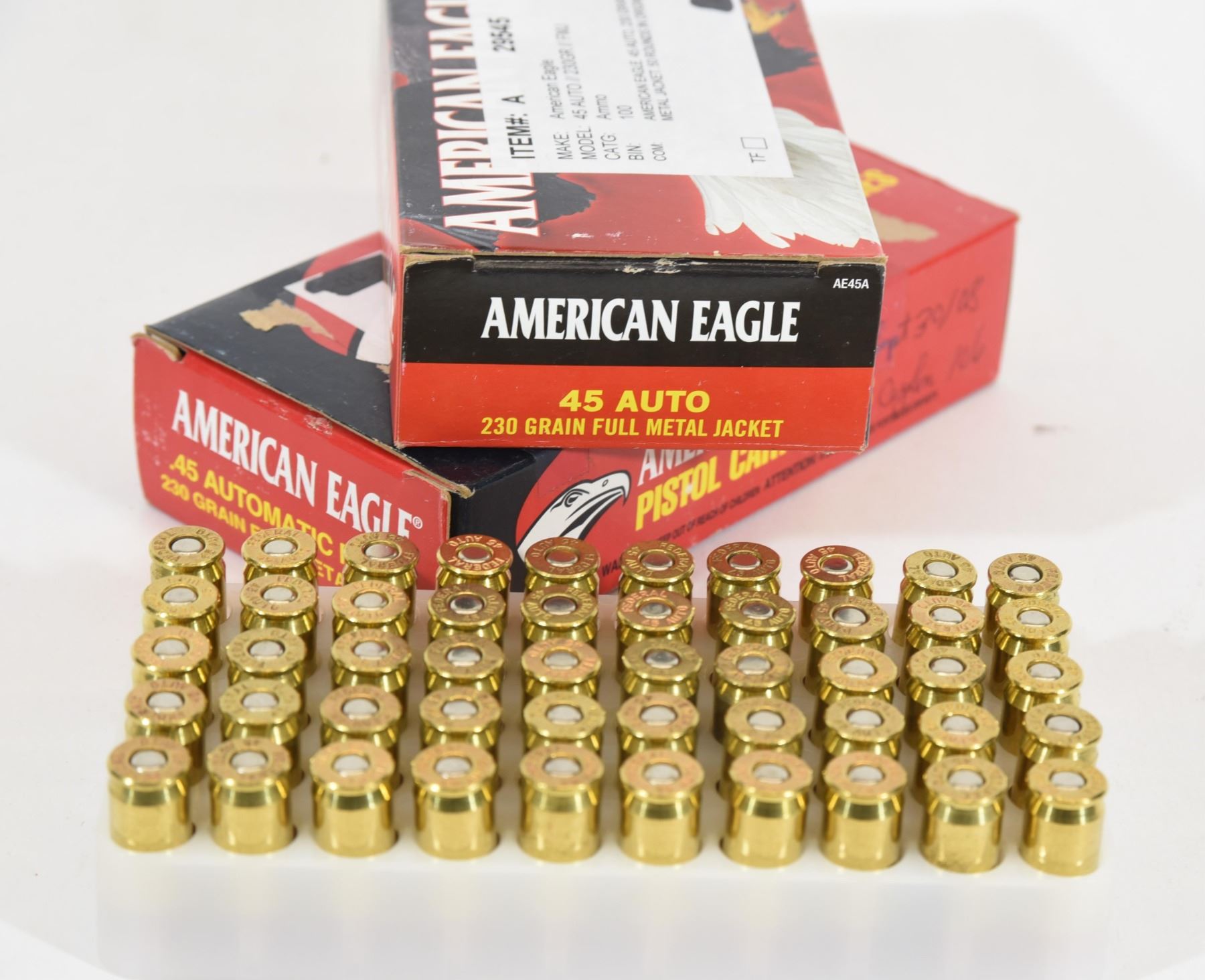 100 rounds American Eagle 45 Auto 230 GR, FMJ.
