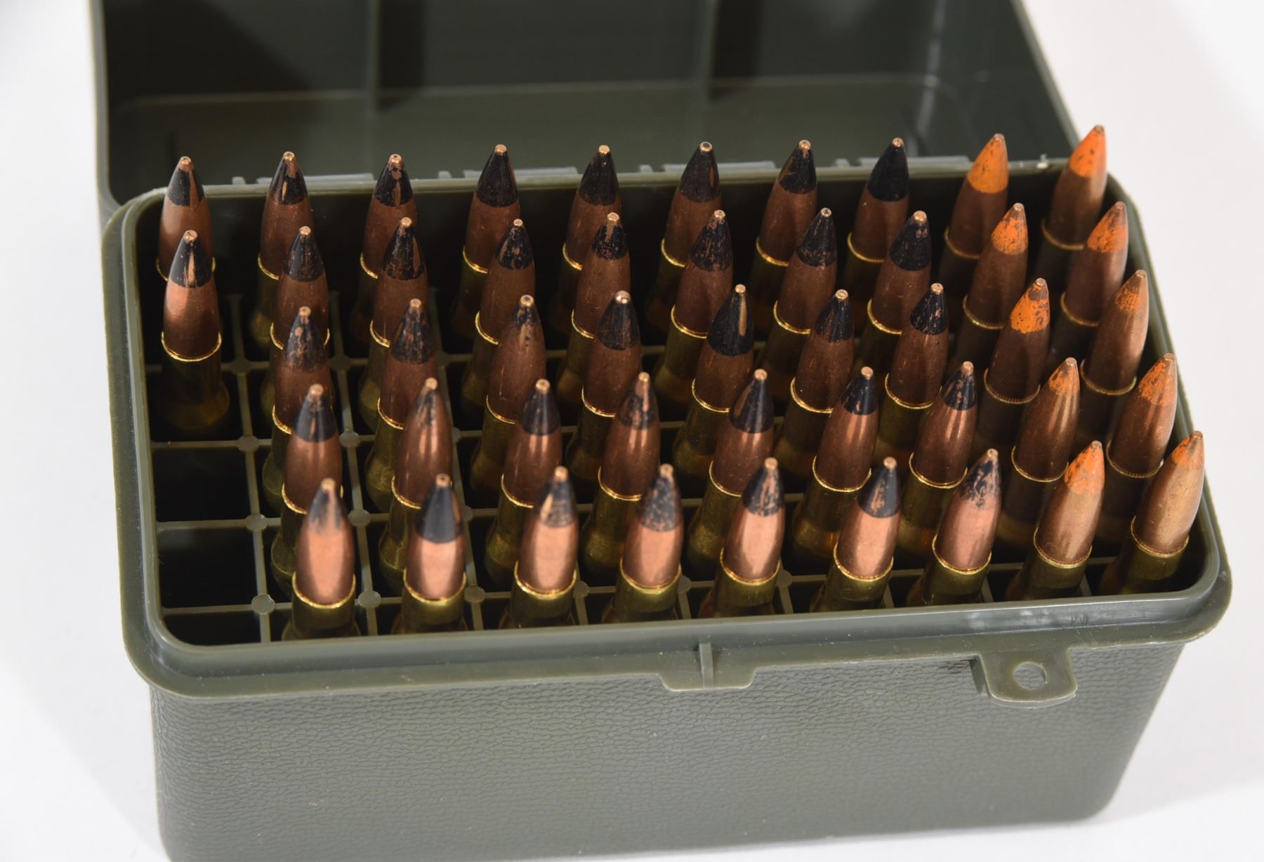 1) 37 rounds of Black Tip, 30-06 Armor Piercing, 1970's, LC headstamp. 2) 8 rounds of Orange Tip, 30-06, Tracer 1954 LC headstamp. 3) 2 rounds of Orange Tip, 30-06, Tracer 1959 LC headstamp.