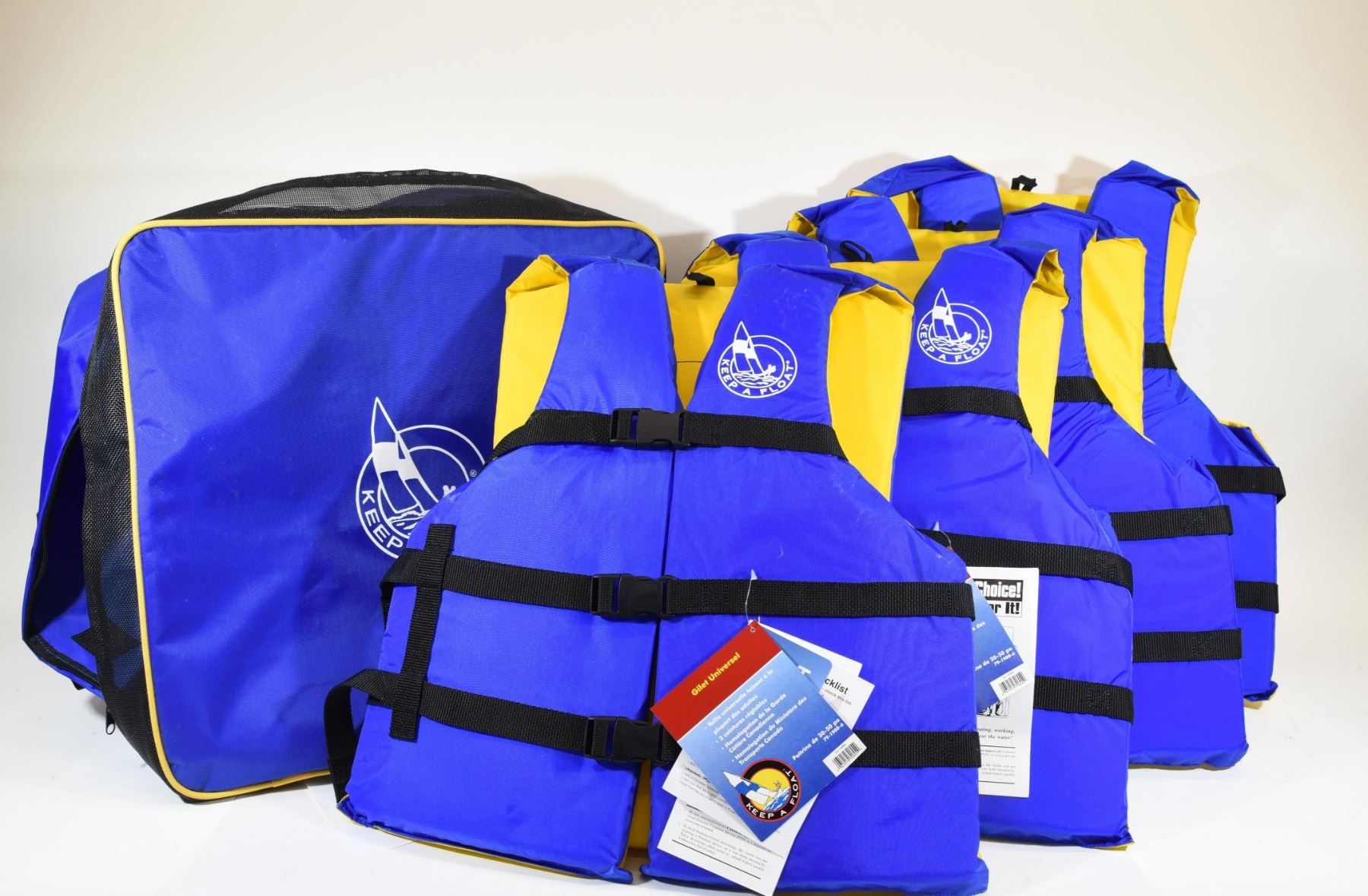 All in a storage bag. D.O.T. & Canadian Coast Guard approved. All are chest size 30 - 50 inches. 3 adjustable belts. All new, never used.
