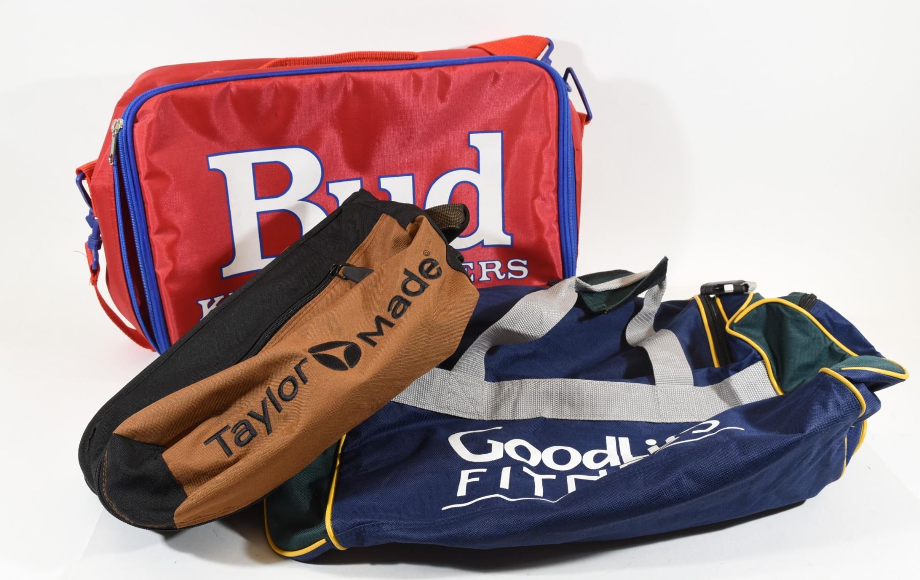 1) As new Taylor Made shoe bag. 2) As new sport bag roughly 20" x 10" x 8". 3) Budweiser 24 can cooler bag.