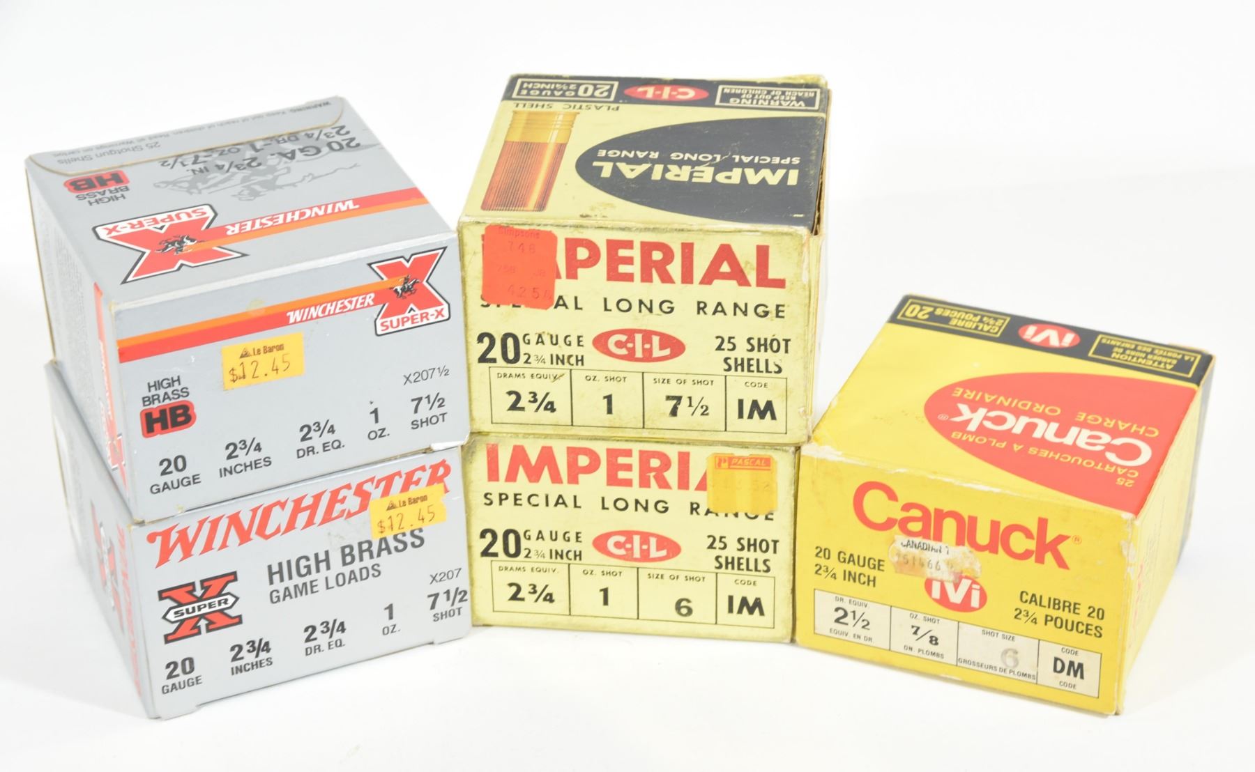50 rounds Winchester 7 1/2 shot, 50 rounds Imperial 7 1/2 shot and 25 rounds Canuck 6 shot.