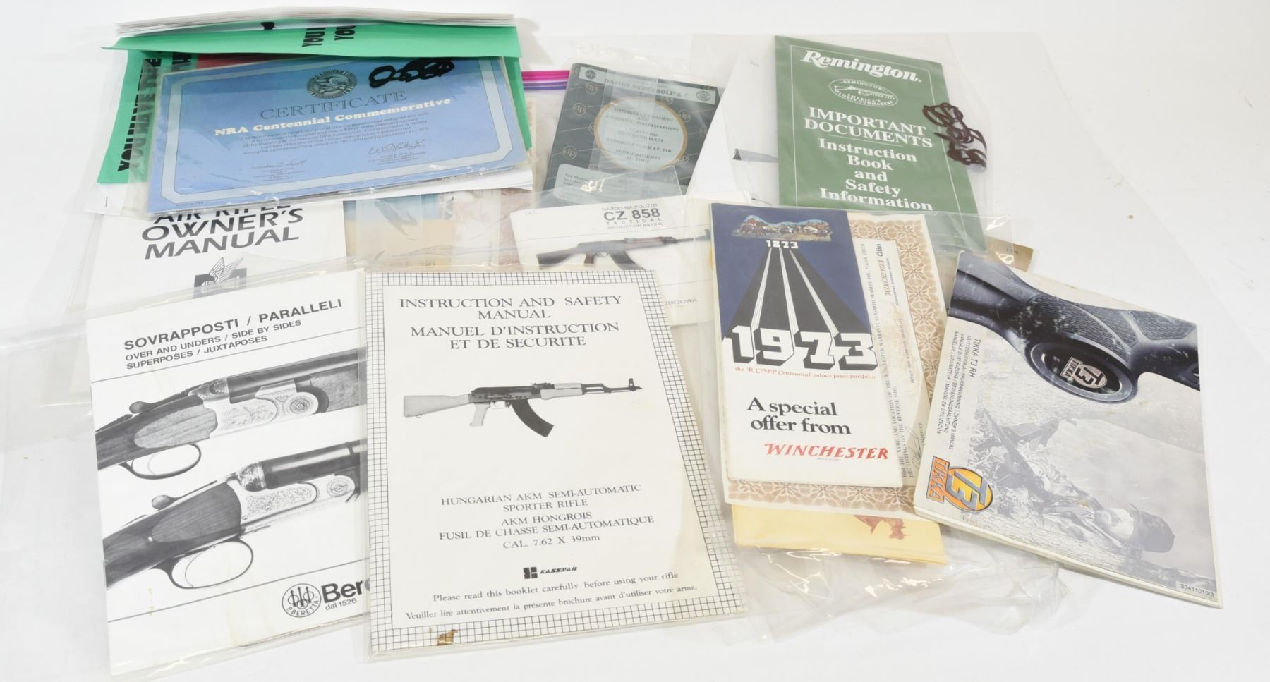 Davide Pedersoli, Tikka T3, Armalite R50, NRA Centennial Commemorative, Winchester RCMP Centennial, Remington SP10, Hungarian AKM Sporter Rifle, Beretta Superposed, CZ 858, CQ-A5.56 semi auto, Chiappa Spencer Reproduction, Patriot Air Rifle, Winchester Centennial 66.