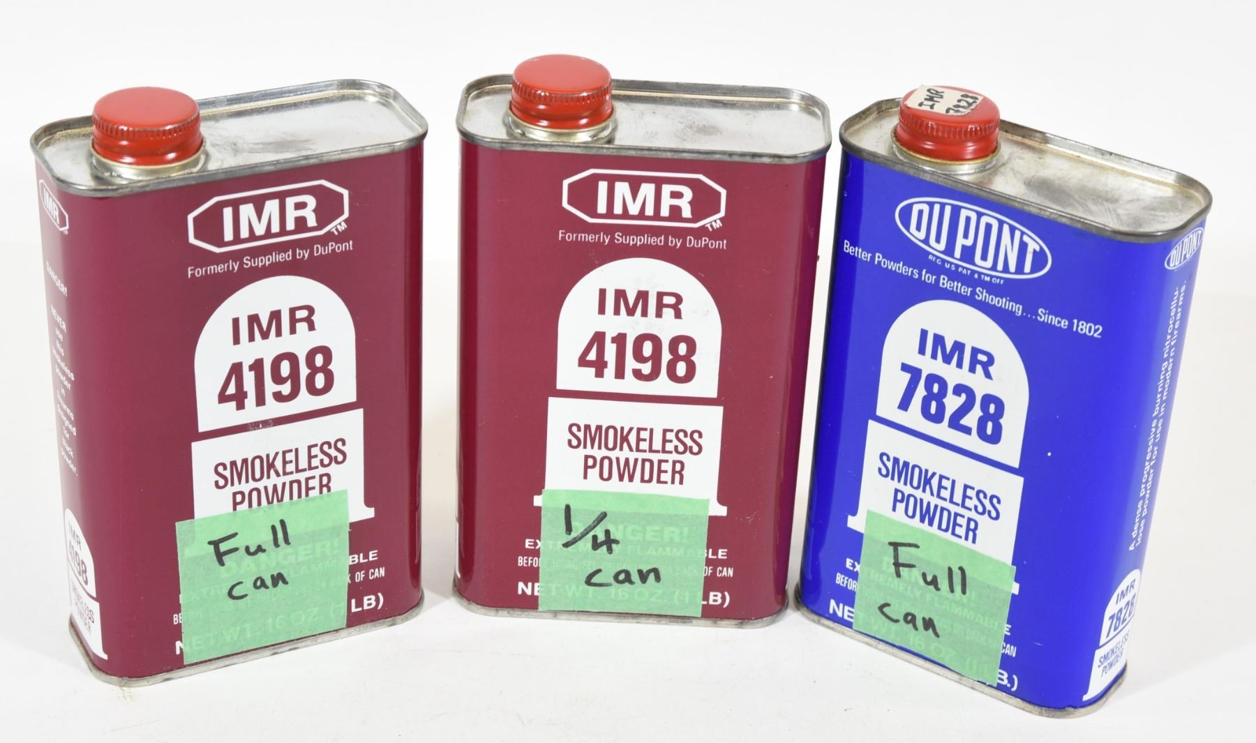 1) One full 1 pound & a 1/4 can of IMR 4198 powder. 2) One full 1 pound can of IMR 7828 powder.