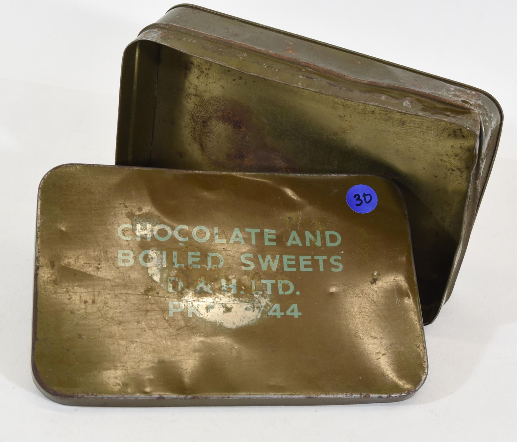Dated 1944. Had chocolate and boiled sweets. D. & H. Ltd. Pkd /44 on the lid.