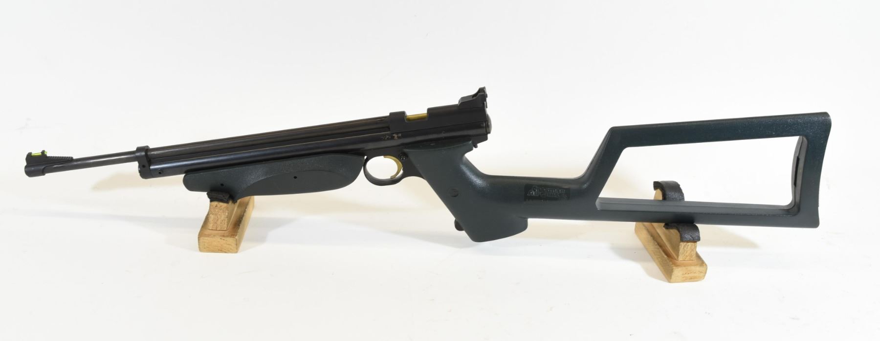 No PAL required, 495 fps., Multi-stroke pump. Removable stock with pistol grip plates. 14" barrel, 30" total length, 1.1kg. Bolt action, no magazine, breech loader. Canadian version – limited to 495fps
