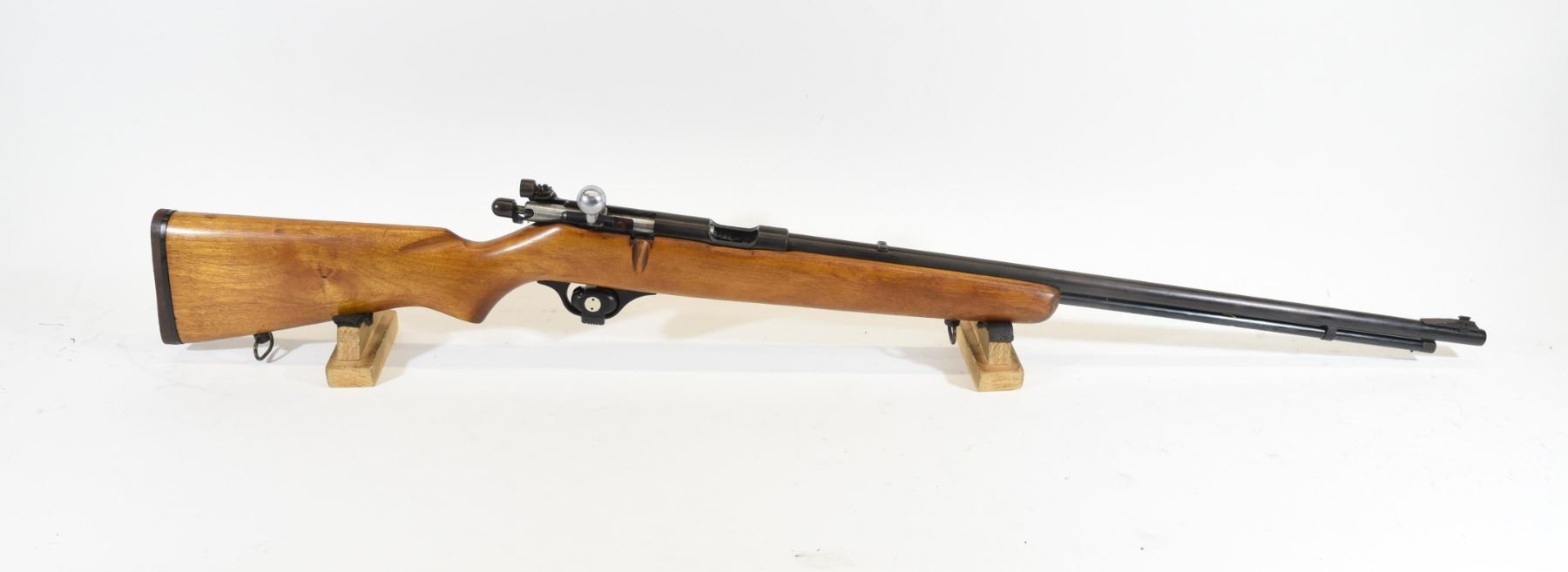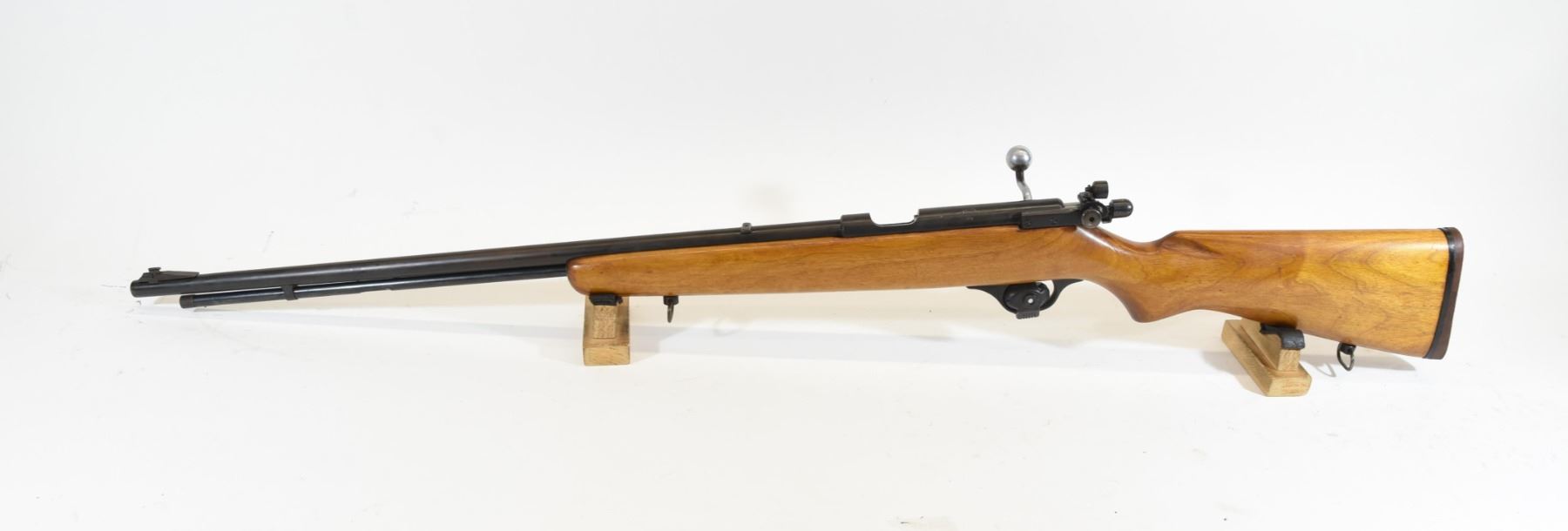 Non-restricted, bolt action, 22 LR, 24" barrel, SN none. Wood has a few small marks, bluing grey with a few pit marks, bore excellent.