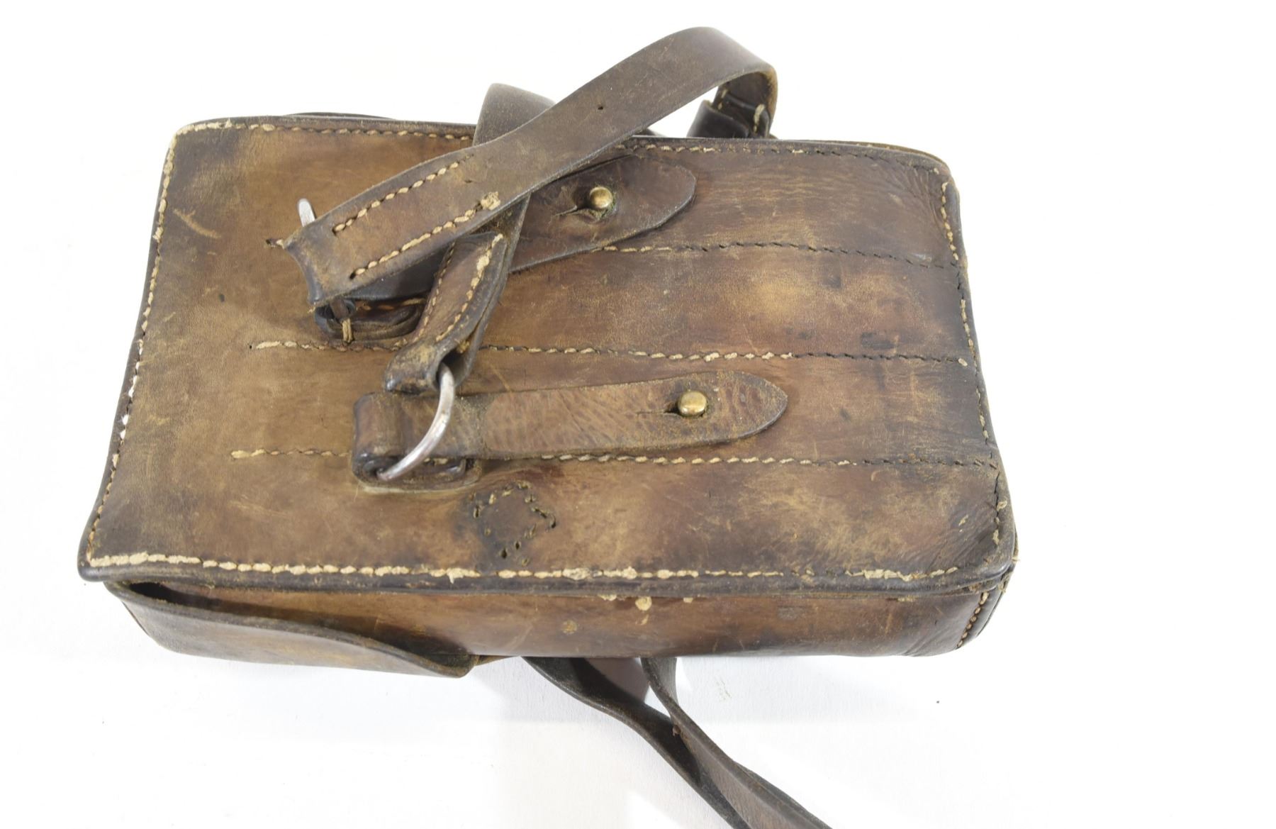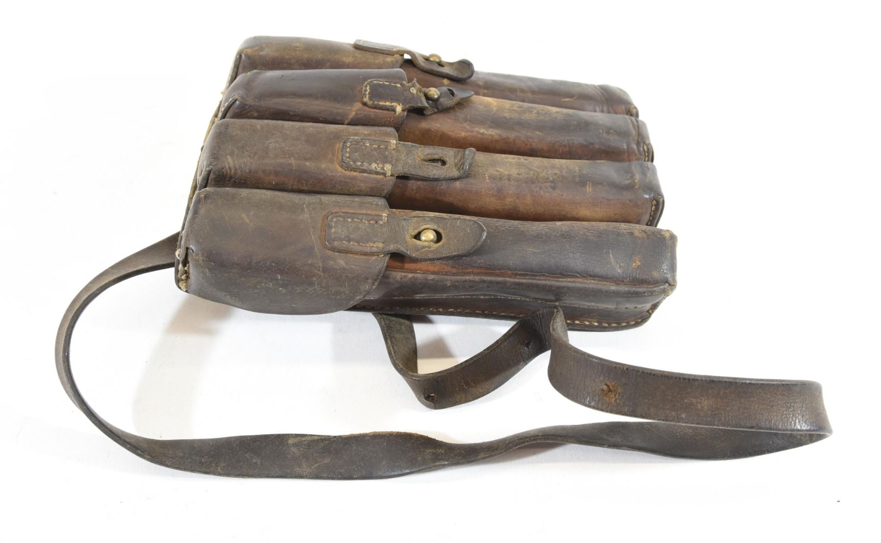 German Werhmacht WWII brown leather 4 magazine pouch. Missing 1 closure on the 2nd flap. Has expected wear.