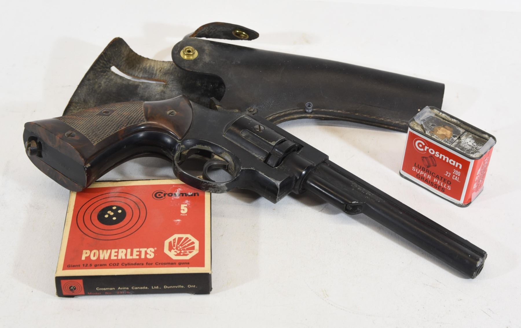 Comes with pellets, holster and CO2 cartridges.