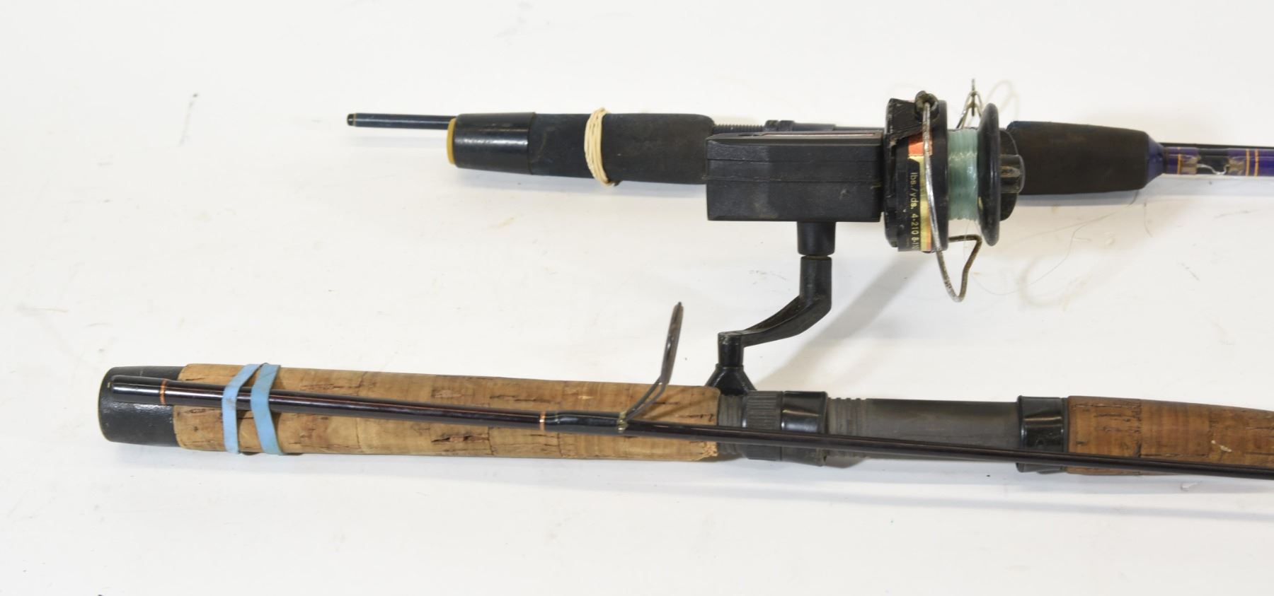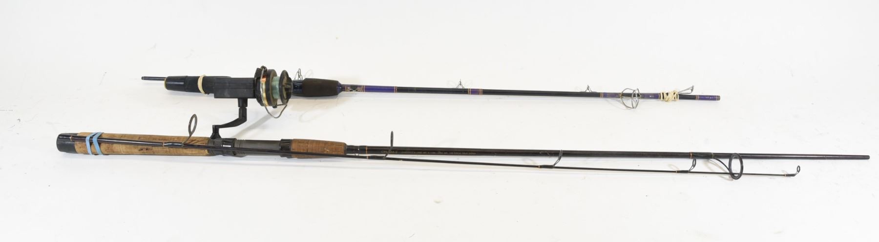 1) Unknown 5' two-piece pole with a 401 Master Jr. open face reel. 2) Shimano 6'6" two-piece rod.