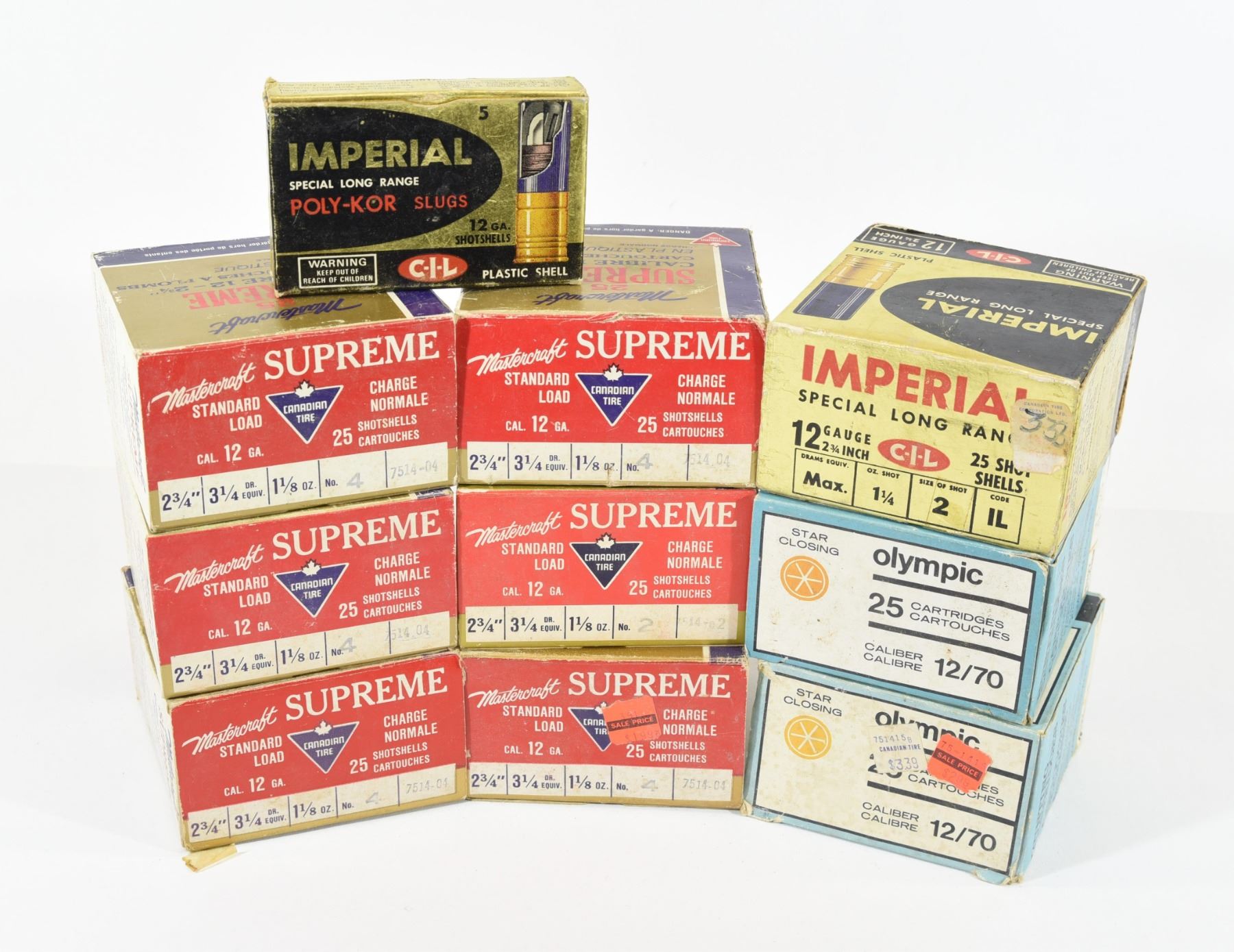 150 rounds Supreme, 50 rounds Olympic, 25 rounds Imperial, 5 rounds CIL slugs.