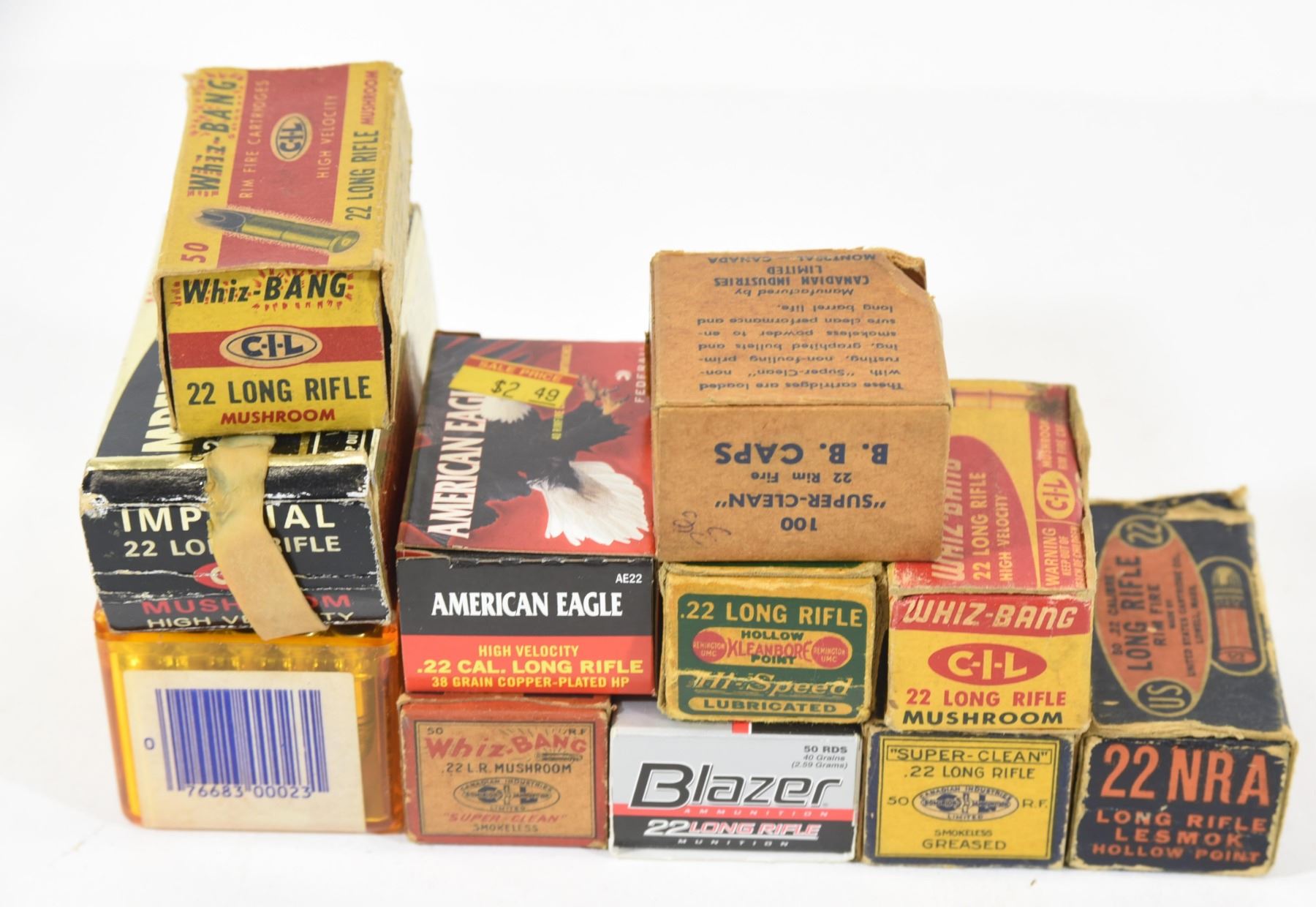 American Eagle, Blazer, Imperial, CCI. Two empty Whiz Bang boxes.