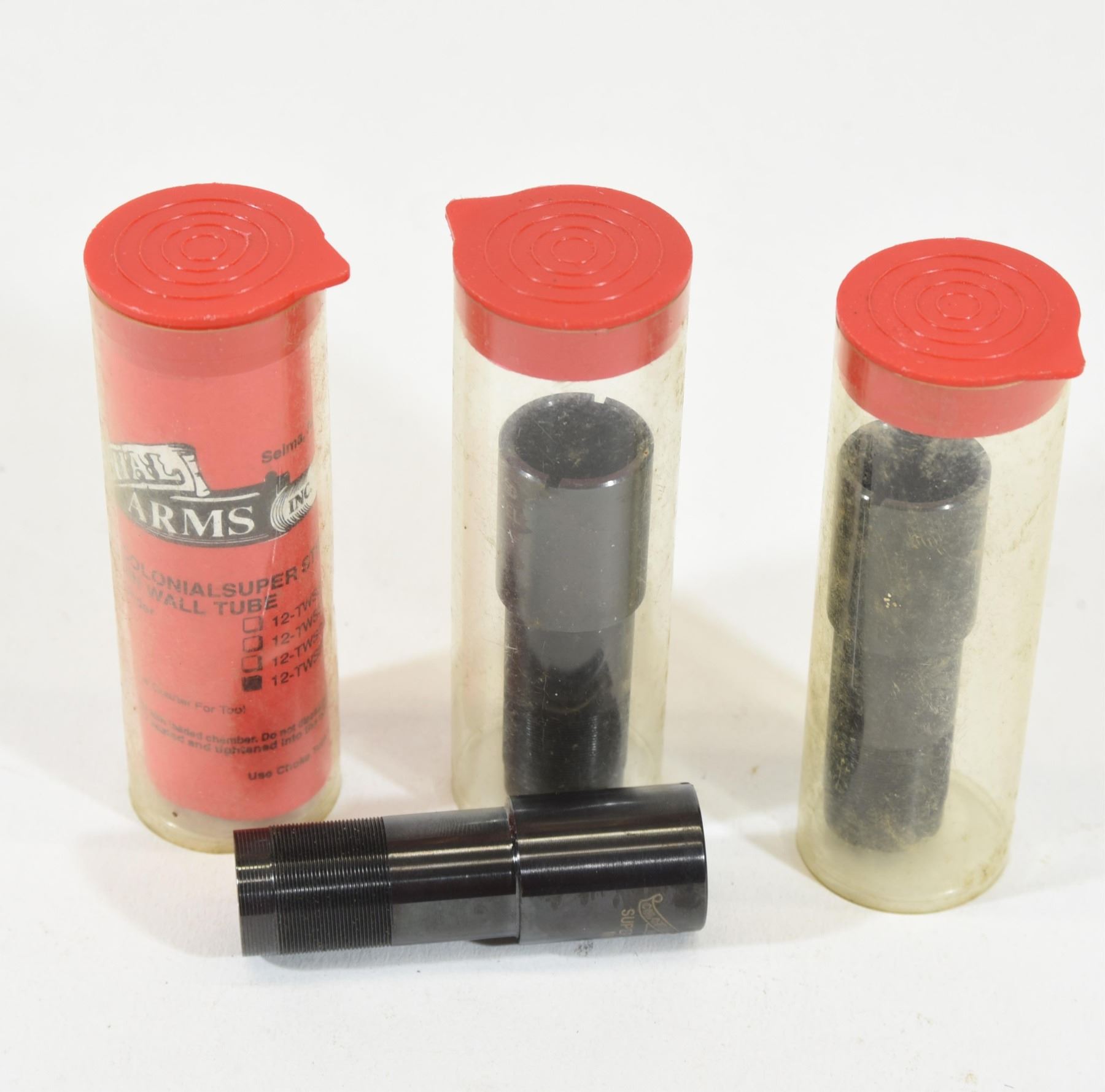 All new Colonial Arms 12 gauge thinwall, 744 44 thread, super steel. 1) Improved cylinder. 2) Extra full. 3) Full. 4) Modified.