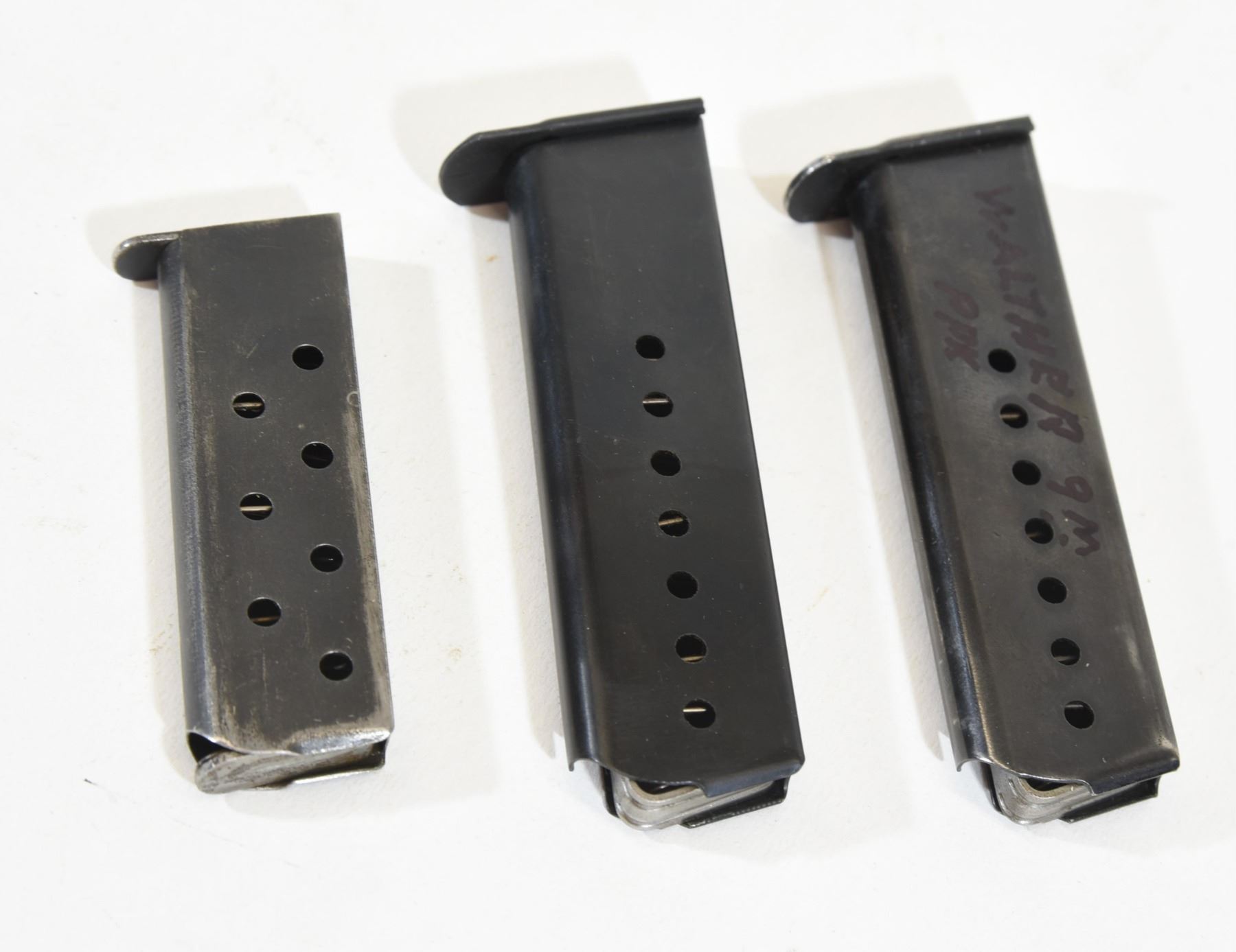 1) Two 8 round magazines. 2) Unknown 32 caliber magazine.