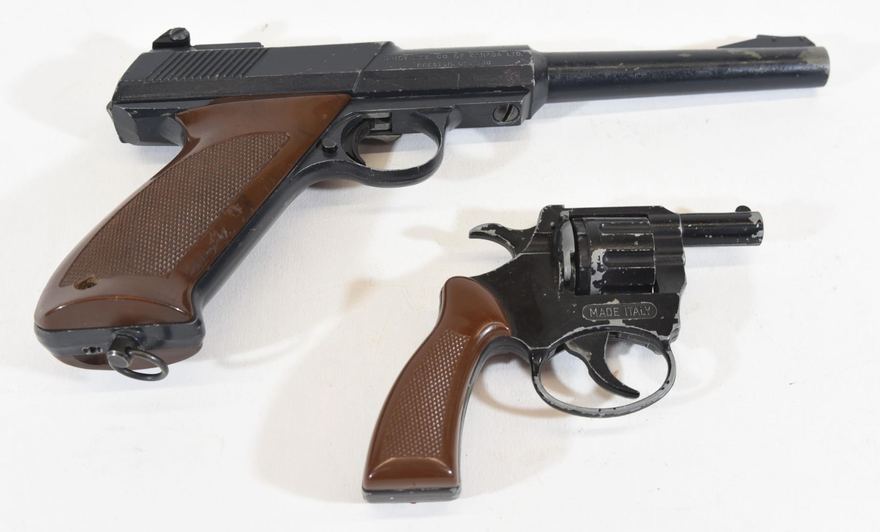 1) Daisy model 200 CO2 BB gun. Unknown functionality. 2) Vanguard 22 caliber blank starter pistol.