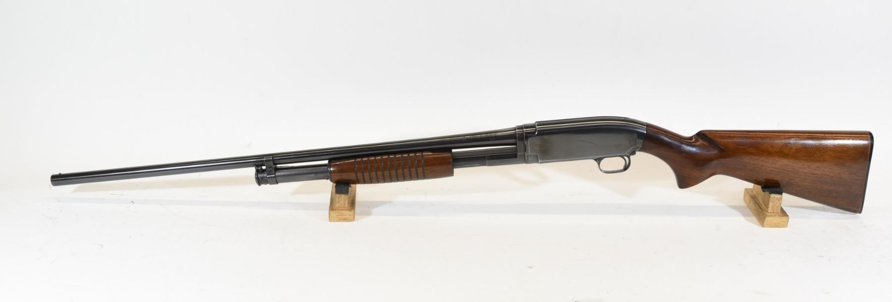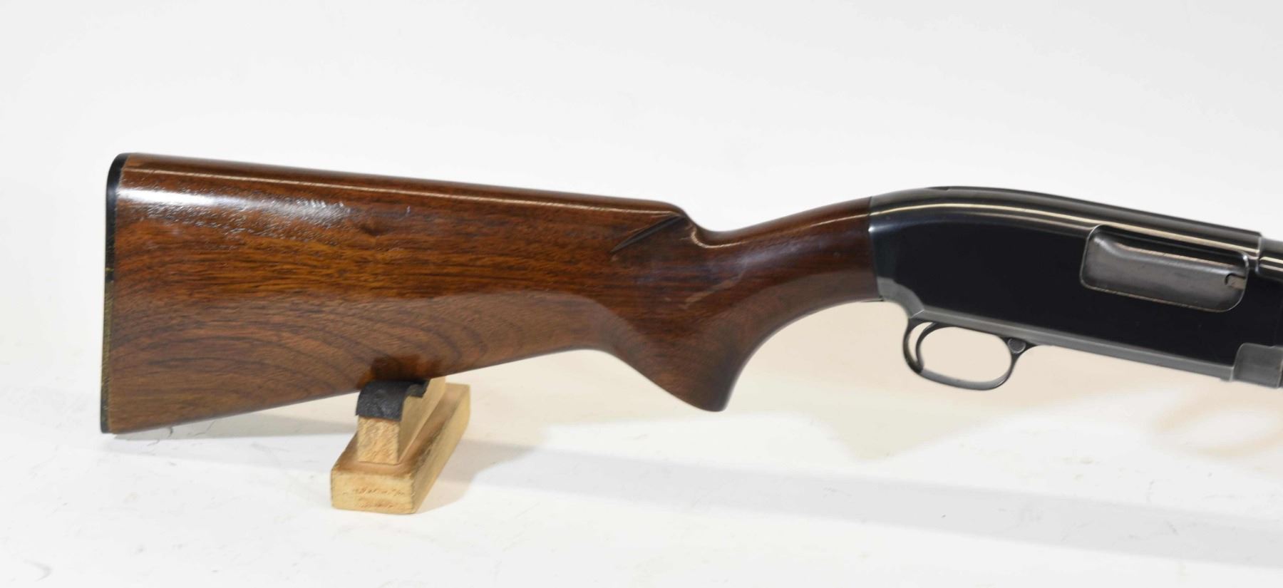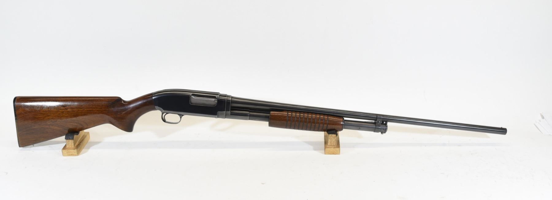 Non-restricted, pump action, 20 Ga x 2 3/4", 28" barrel with fixed full choke, SN 1655047. Excellent condition. Mfd 1958.