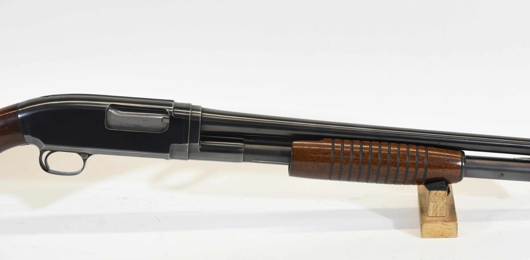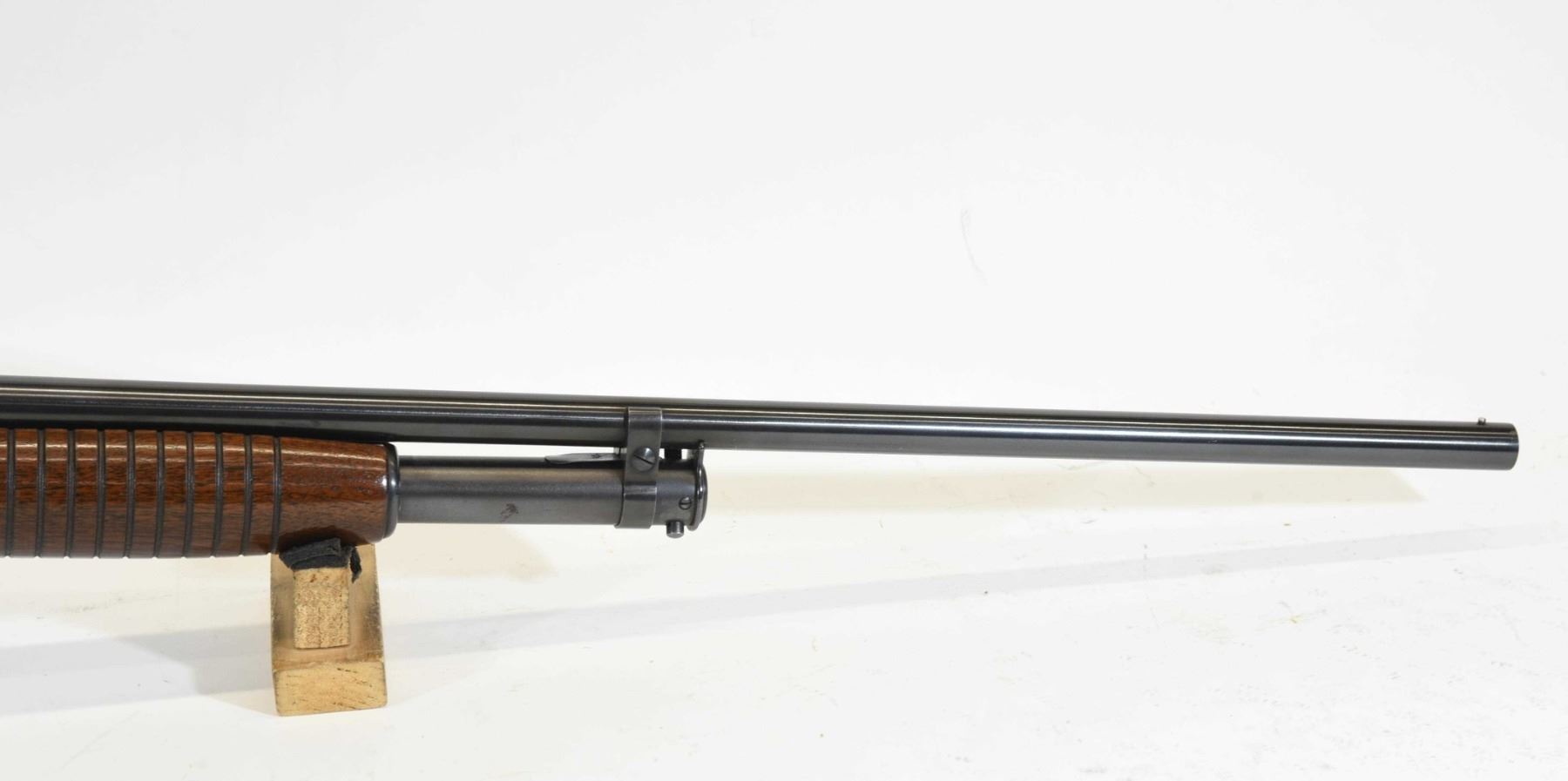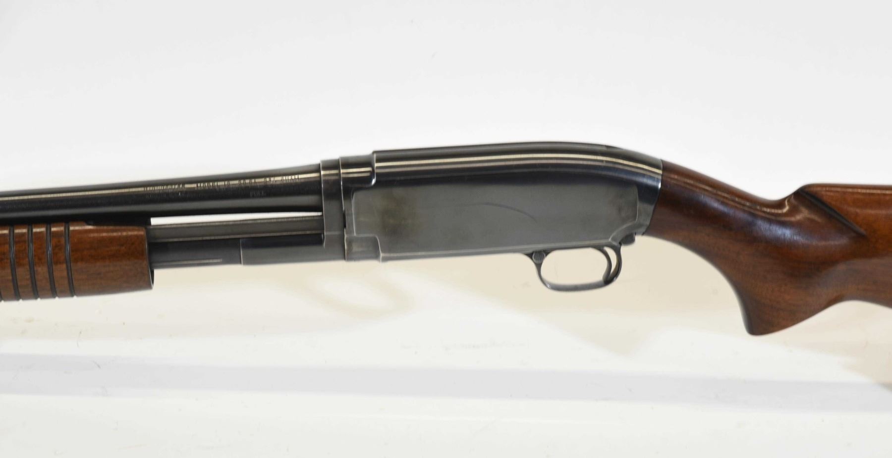 Non-restricted, pump action, 20 Ga x 2 3/4", 28" barrel with fixed full choke, SN 1655047. Excellent condition. Mfd 1958.