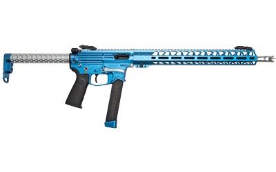 Battle Arms Development, Inc., PCC, Semi-automatic Rifle, 9MM, 16" Barrel, 1:10 Twist, Sonic Blue/Silver Finish, Lightweight Fixed Stock, Polished Sabertube, 1 Magazine, 33Rd, 15" Free Float MLOK Handguard, ATG Pistol Grip