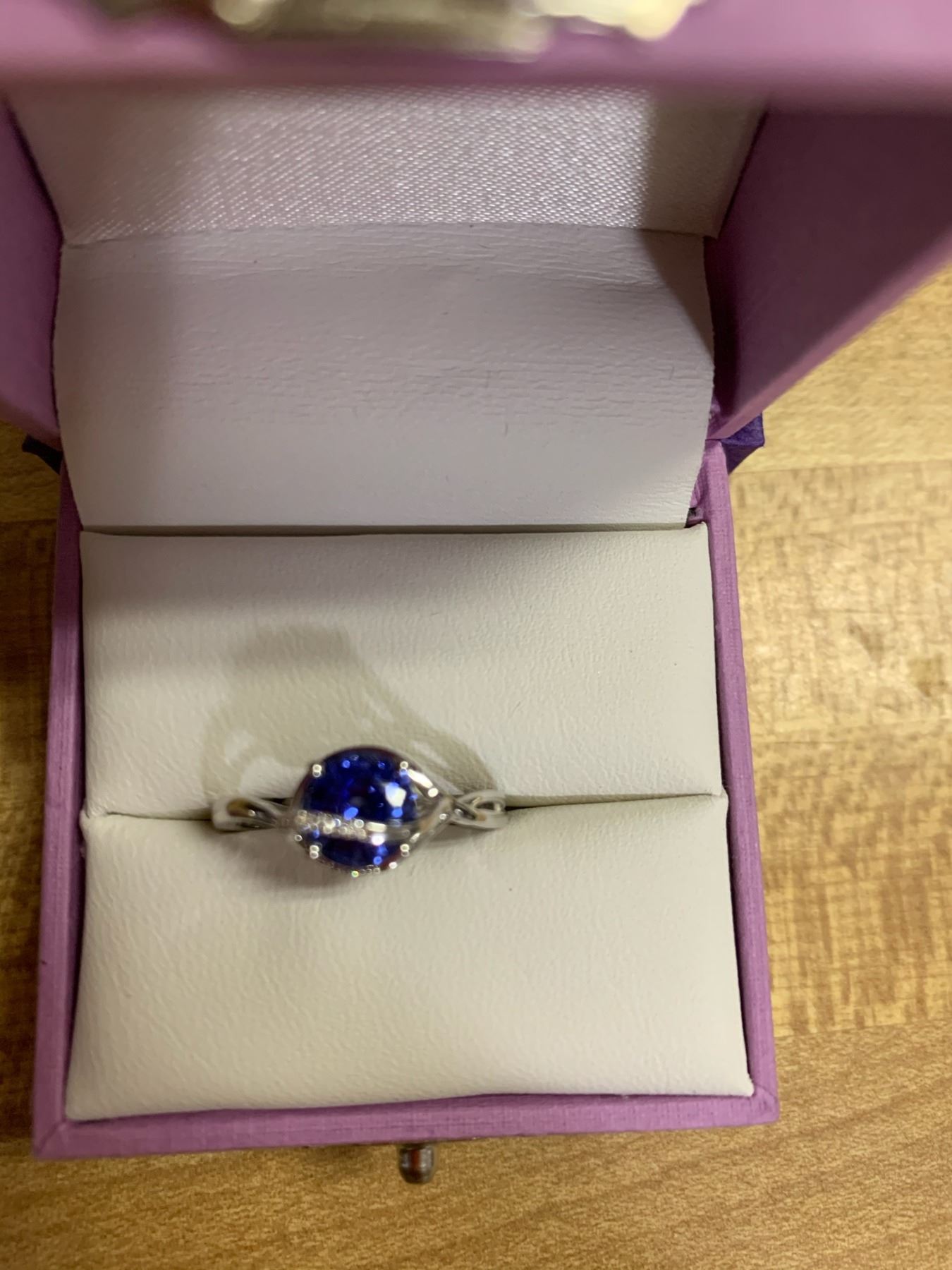 Donation: Blue Sapphire and Diamond Ring in White Gold