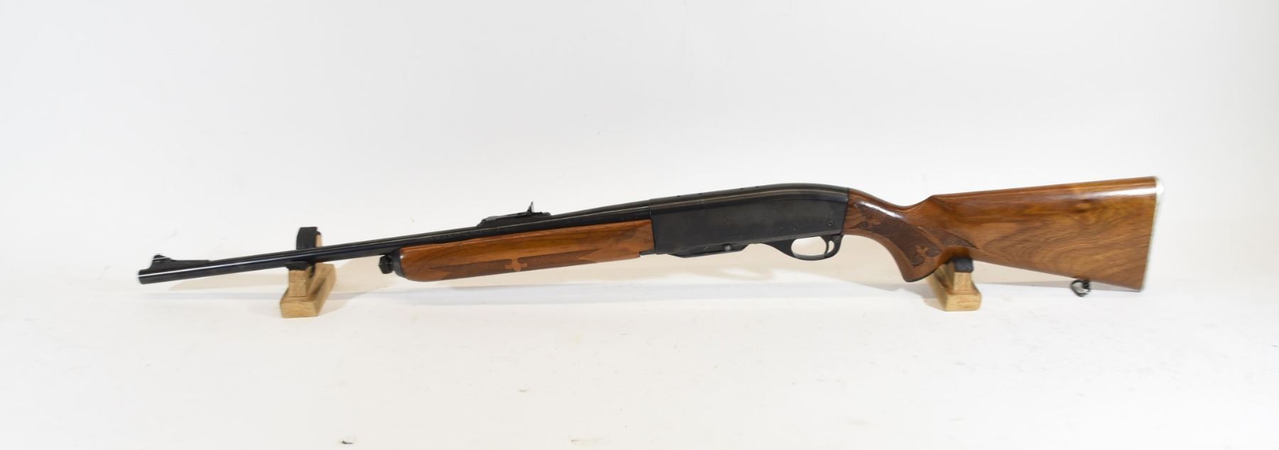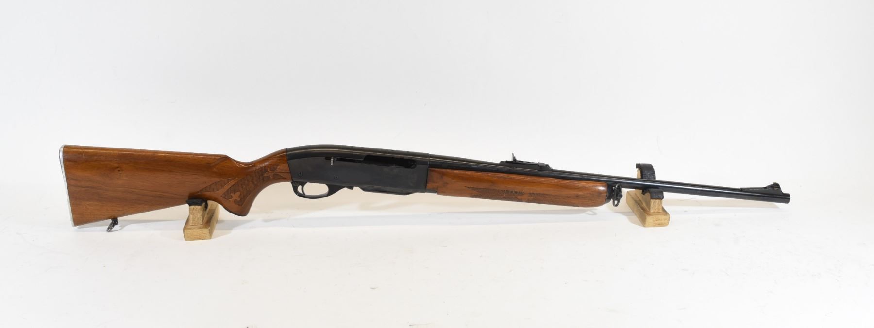 Non-restricted, semi auto, 30-06 Sprg, 22" barrel, SN 2446490. Wood cracked behind receiver, bluing has a few scratches, bore dark from corrosive ammo.