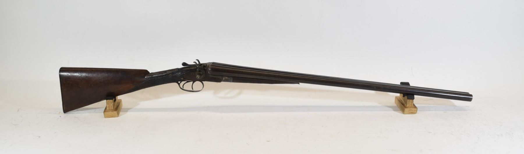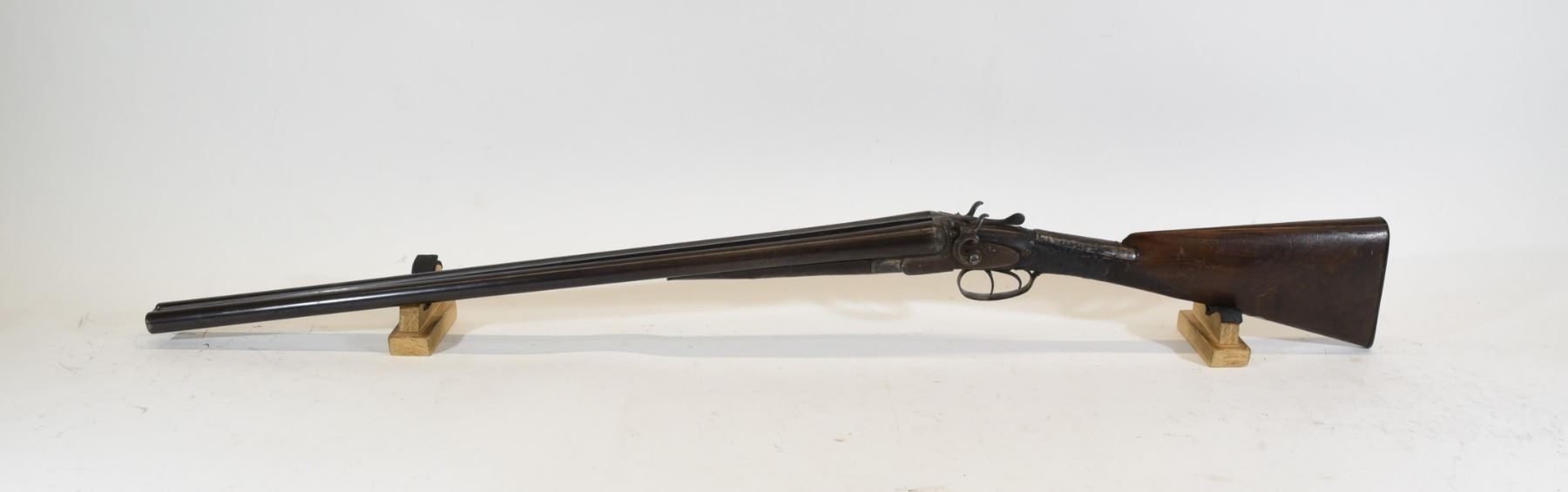 Non retricted, multi barrel, 12 gauge x 2 3/4", 28" barrel with full and skeet2 chokes, SN 44333, wood is broken at the wrist and other light marks, bluing is brown, bores have a bit of pitting.