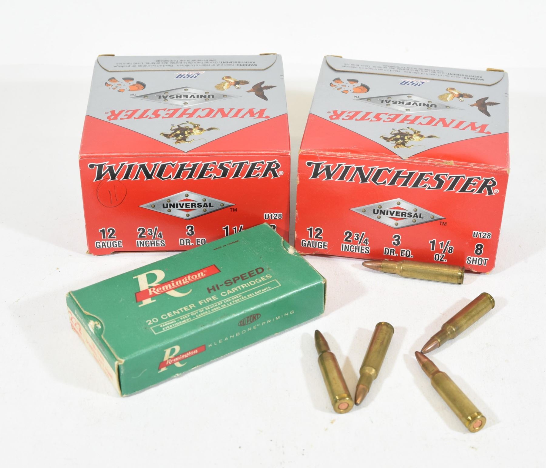 5 rnds Remington 222 Rem with 20 brass, 36 rounds mixed headstamp 12 Ga x 2 3/4" shotshells.