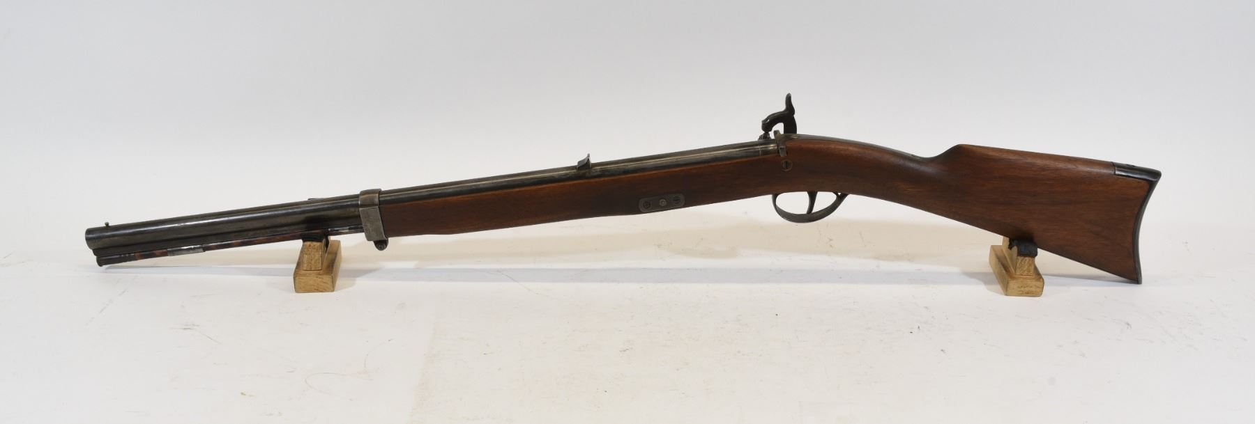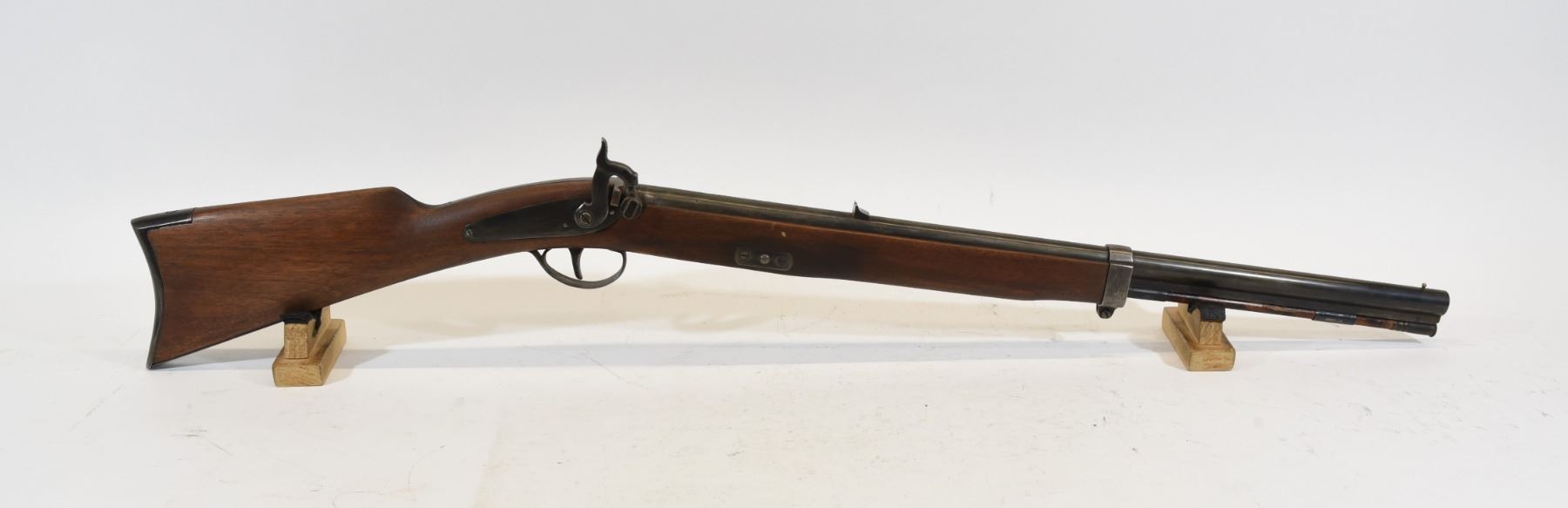 Non-restricted, single shot, 70 percussion, 26" barrel, SN 179. Custom wood has a few marks and scratches, bluing is grey, bore excellent.