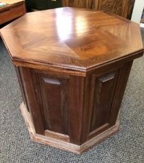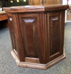 Handcrafted walnut pedestal 24 inches tall and 29 inches wide octagon. This pedestal was donated by longtime supporter Brad Bennett of Great Falls, Montana. 406-781-3242 email: bswnbennett@gmail.com We thank Brad for this donation. Value: $700.00