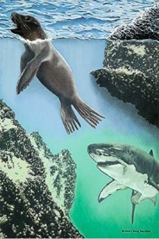 Lot 8 FRAMED WILDLIFE ART "SHARK ATTACK":