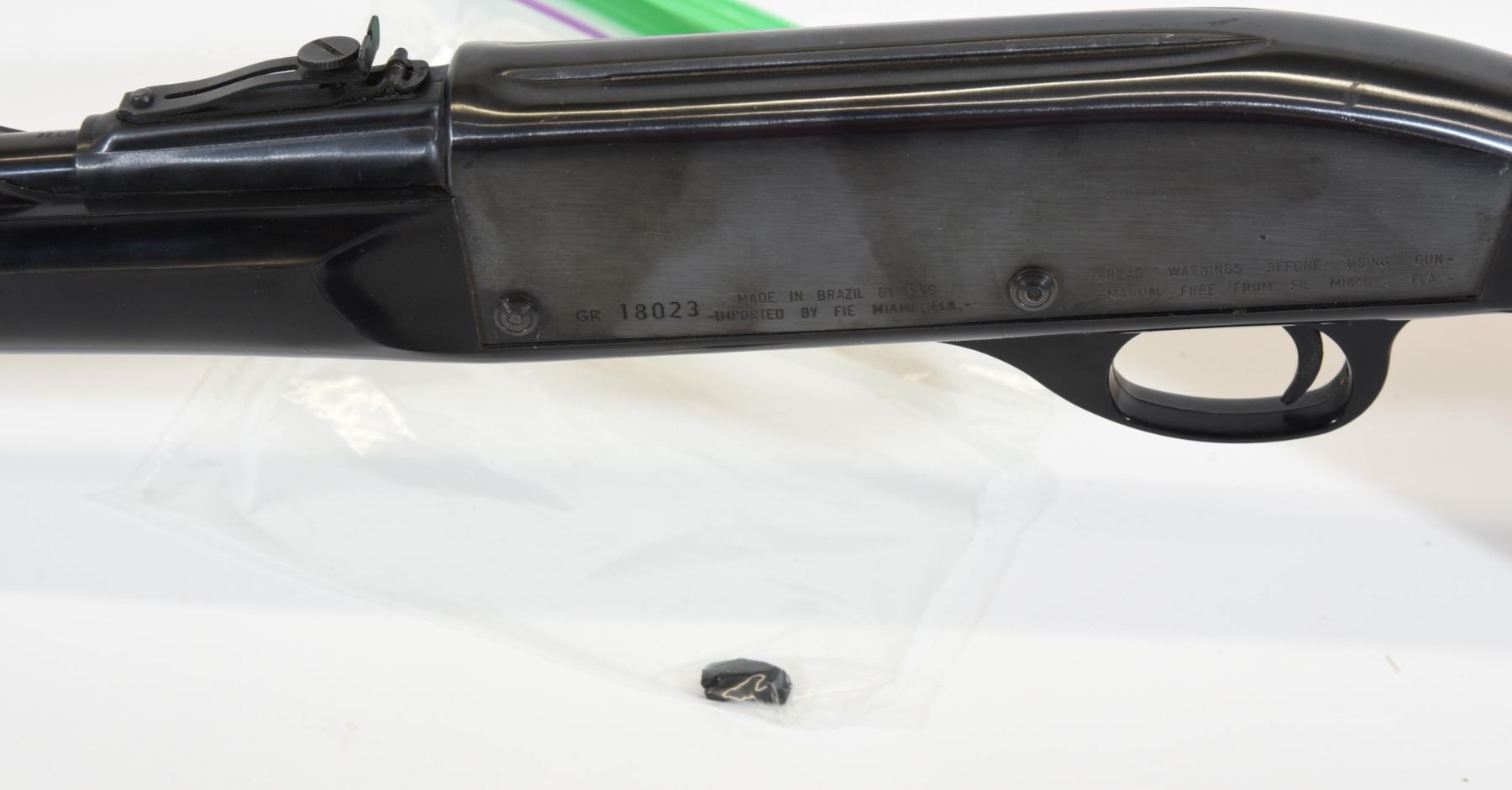 Non-restricted, semi auto, 22 LR, 19 12/" barrel, SN GR18023. Synthetic stock has some minor scratches, bluing is marked on receiver, bore excellent. Charge handle broken.