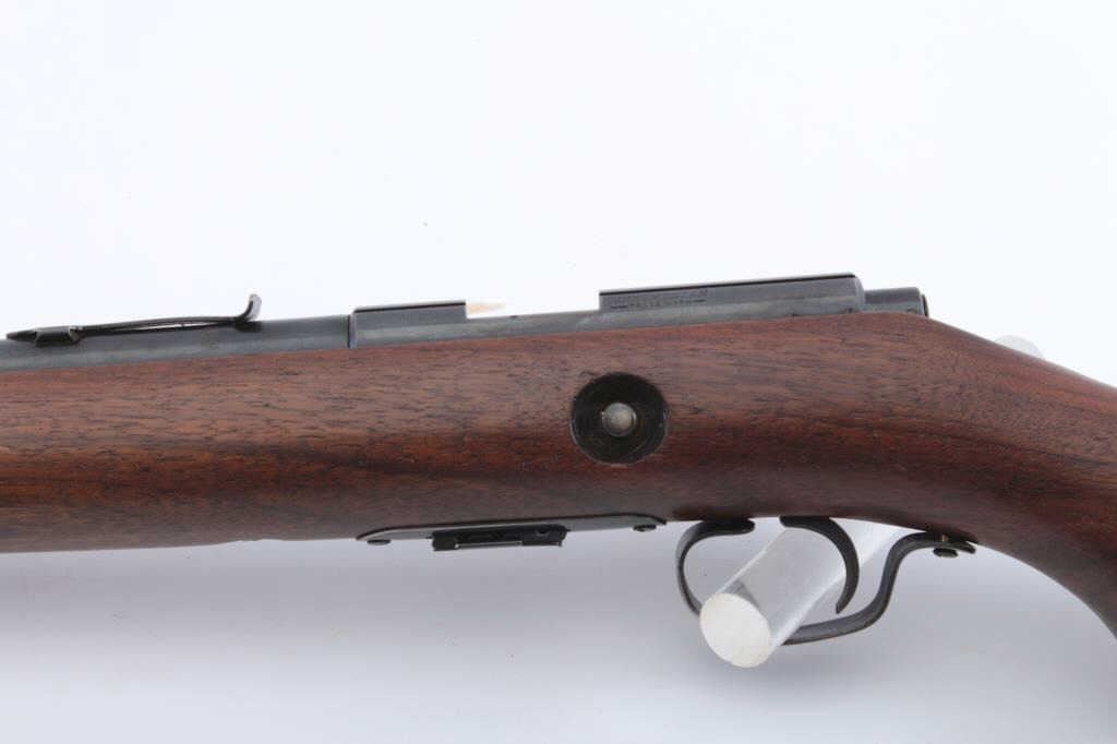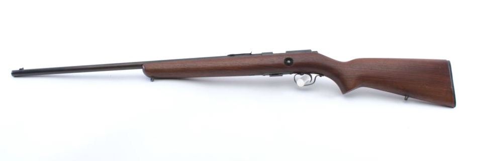 Winchester Model 69A bolt action rifle, .22 S., L. or L.R. caliber, Serial #NSNV. The rifle is in very good overall condition with a 25” barrel with a blade front and standard rear sights. The rear sight is missing theelevator. The barrel and receiver retain approximately 80%-85% of the original blue finish with some rub marks on the barrel. The right side of the action has a post-production serial number added whichsome believe was added by retailers like Griffin and Howe and others. The smooth wood stock is in very good condition with only light handling marks noted. The butt stock ends with a Winchester marked plastic buttplate. The rifle is marked, “NEWTON” on the right side of the action and includes one correct magazine. The bore is good, the action is crisp and markings are sharp on this desirable Model 69A. Est.: $300-$600. (Modern).