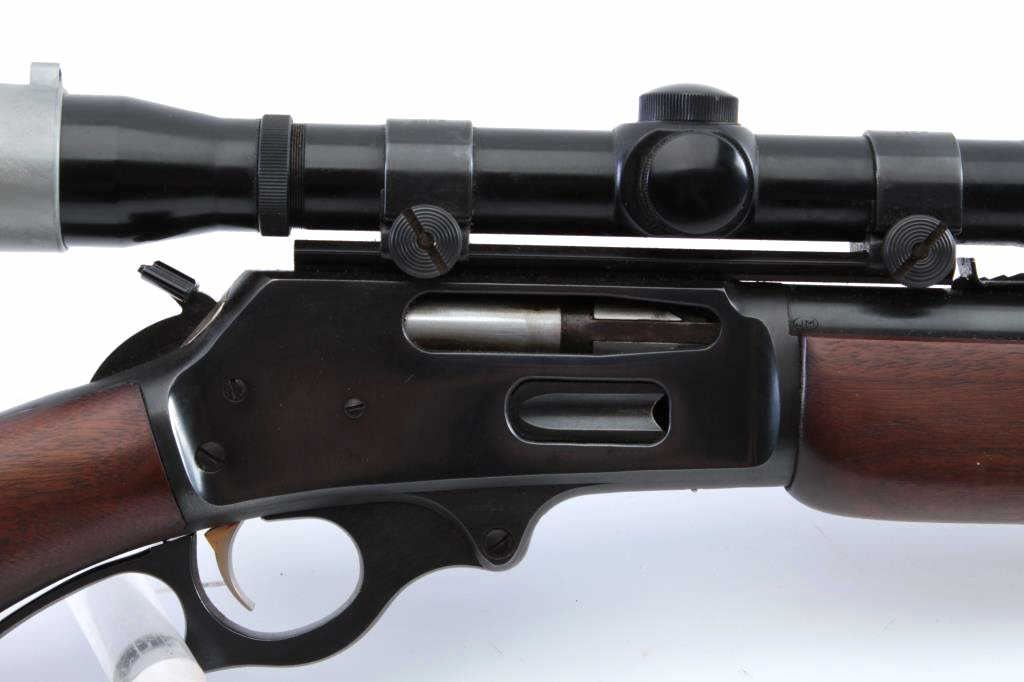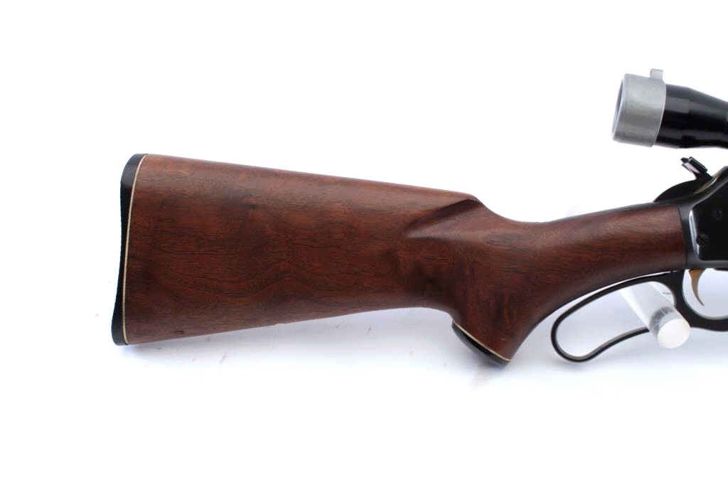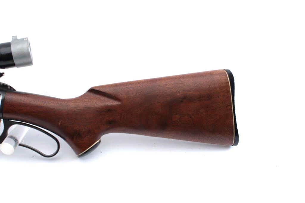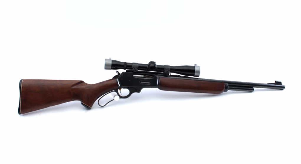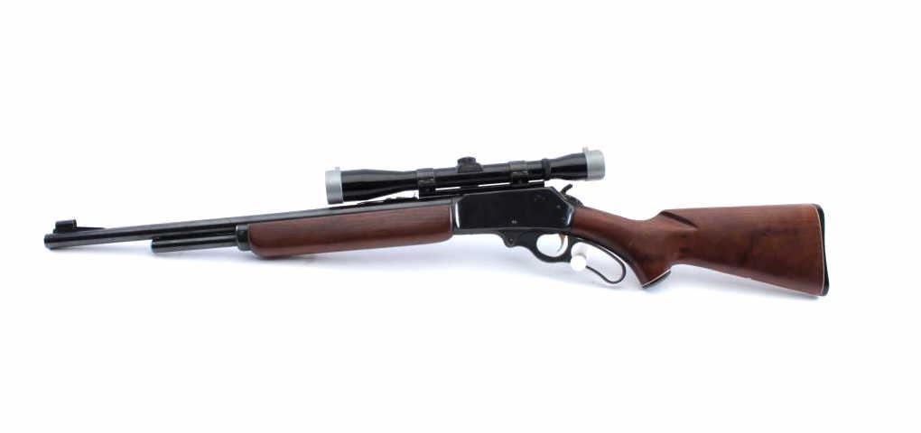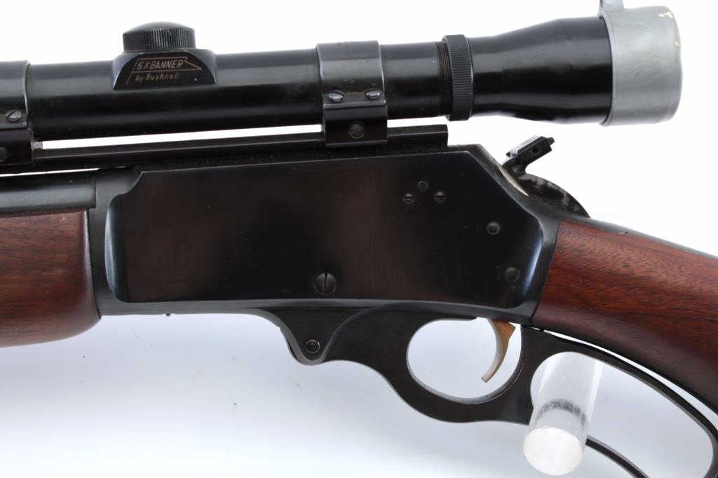 Marlin Model 336 SC lever action rifle, .219 Zipper caliber, Serial #R34965. The rifle is in fine overall condition with a 20” barrel with a ¾ length magazine. The rifle retains nearly all of the original blue finish withlight scratches from carry and use. The smooth wood stock is in very good condition with small mars consistent with field use. The butt stock ends with a plastic butt plate. The rifle is topped with BushnellBanner fixed 6X scope. This Model 336 Sporting Carbine was manufactured in 1958 with the model discontinued in 1963 and is rare in this chambering. Est.: $400-$800. (C+R).
