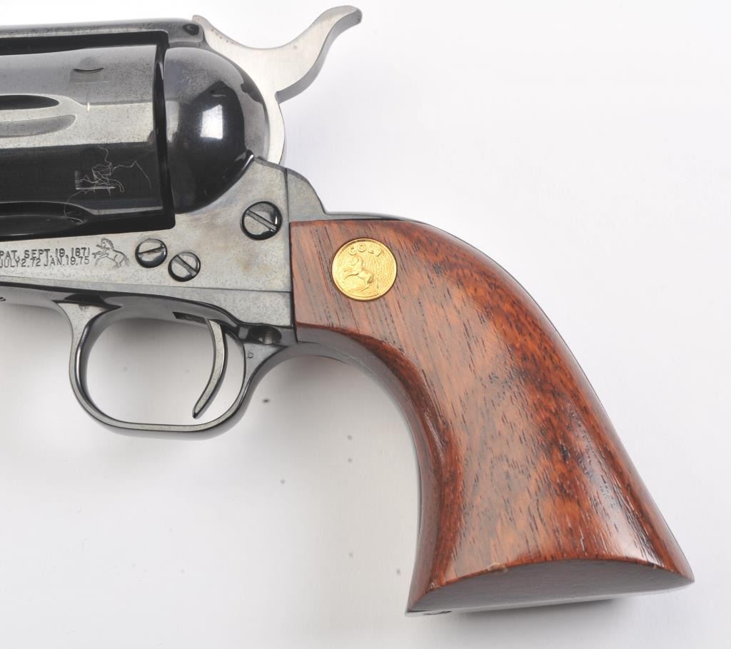 Colt Custom Shop SAA Sheriff’s Edition revolver, .45 Long Colt caliber, Serial #162SE25. The pistol is in excellent condition with a 2 ½” barrel. The pistol retains 99% of the high polish blue finishwith only light handling marks. The smooth wood medallion grips are in excellent condition showing little, to no use. The bore is very good, the action is crisp and the markings are sharp on this nice Sheriff’s Model. (Consecutive to Lot 20AO-9). Est.: $1,250-$2,500. (Modern/PPT).