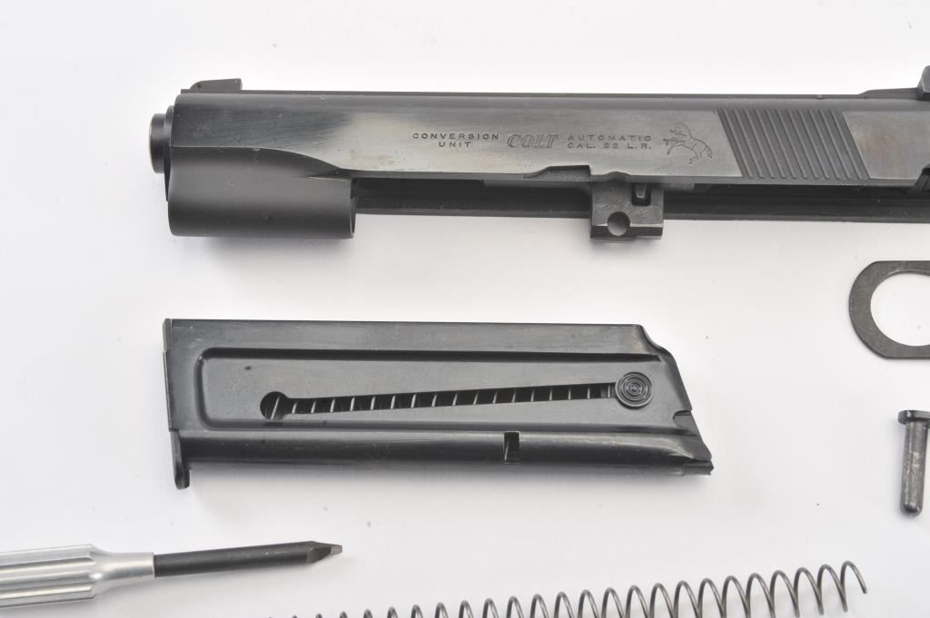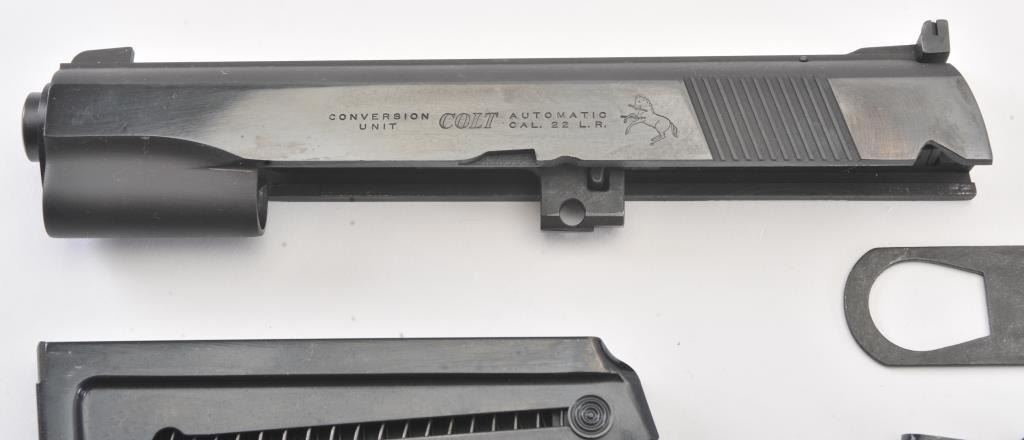 Colt .22 conversion unit in factory cardboard box. The conversion unit is in excellent condition with all associated packaging materials. Est.: $350-$700.