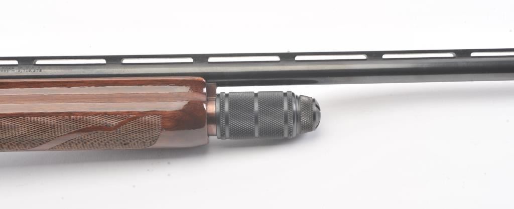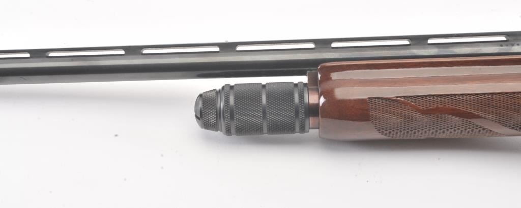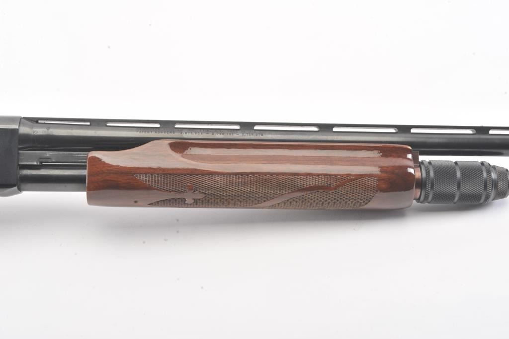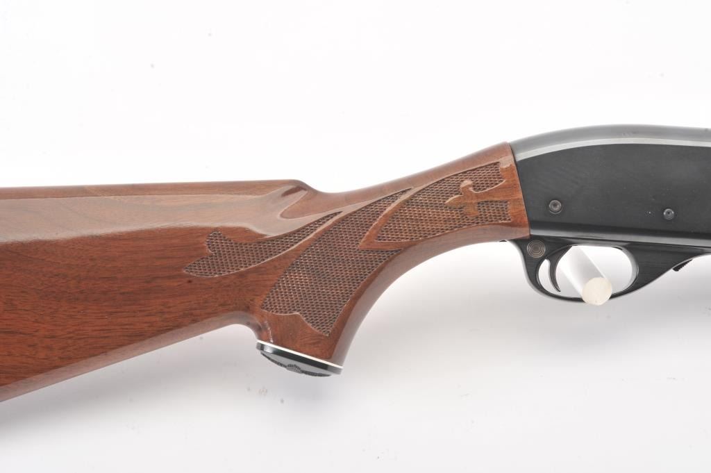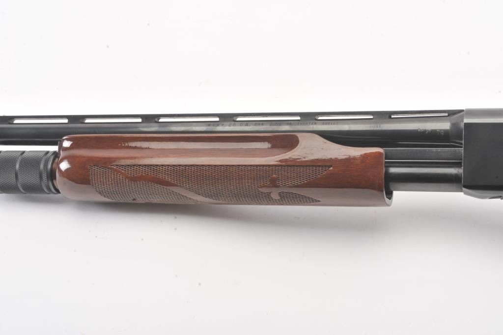 Remington Model 870 LW pump shotgun, 28 gauge, Serial #V369543J. The shotgun is in excellent overall condition with a 25” barrel with a full-length ventilated rib and an ivory bead front sight. The finely checkered Walnut stock is in very good condition with light handling marks. The butt stock ends with a plastic Remington marked butt plate providing a 14” LOP. The bore is good, the action is crisp and the markings are sharp.Est.: $350-$700. (Modern).