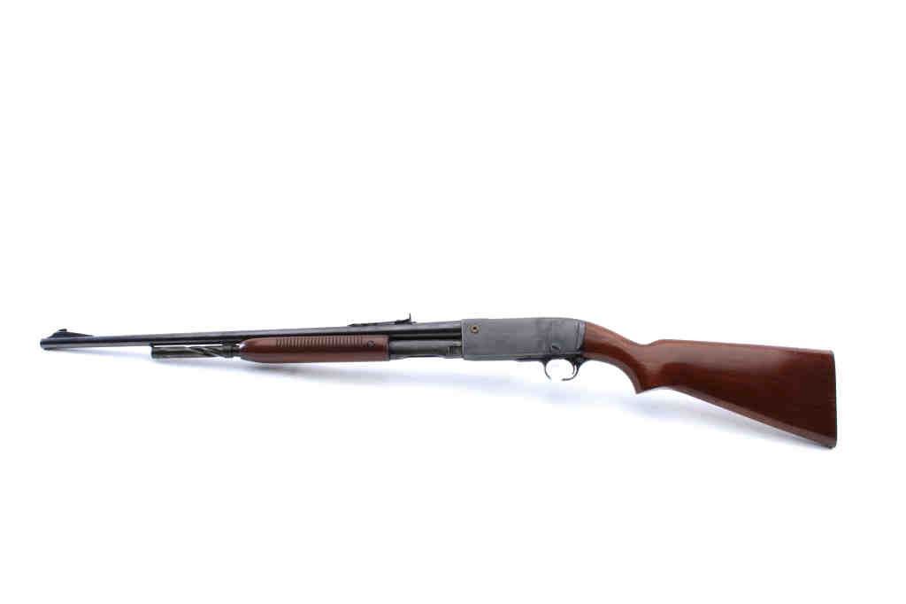 Remington Game Master Model 141 pump rifle, .30 Remington caliber, Serial #47591. The rifle is in excellent overall condition with a 24” barrel. The rifle retains nearly all the blue finish with light handling marks.The smooth wood stocks are in very good condition with small mars and compressions consistent with carry and use. The butt stock ends with a checkered steel butt plate. The bore is good, the action is crisp andthe markings are sharp. Est.: $450-$900. (C+R).