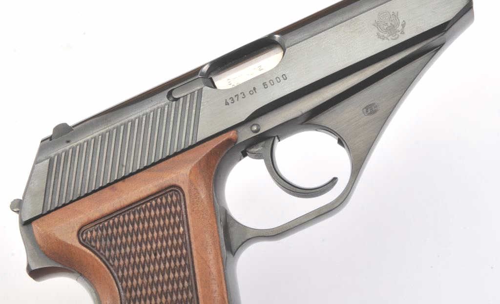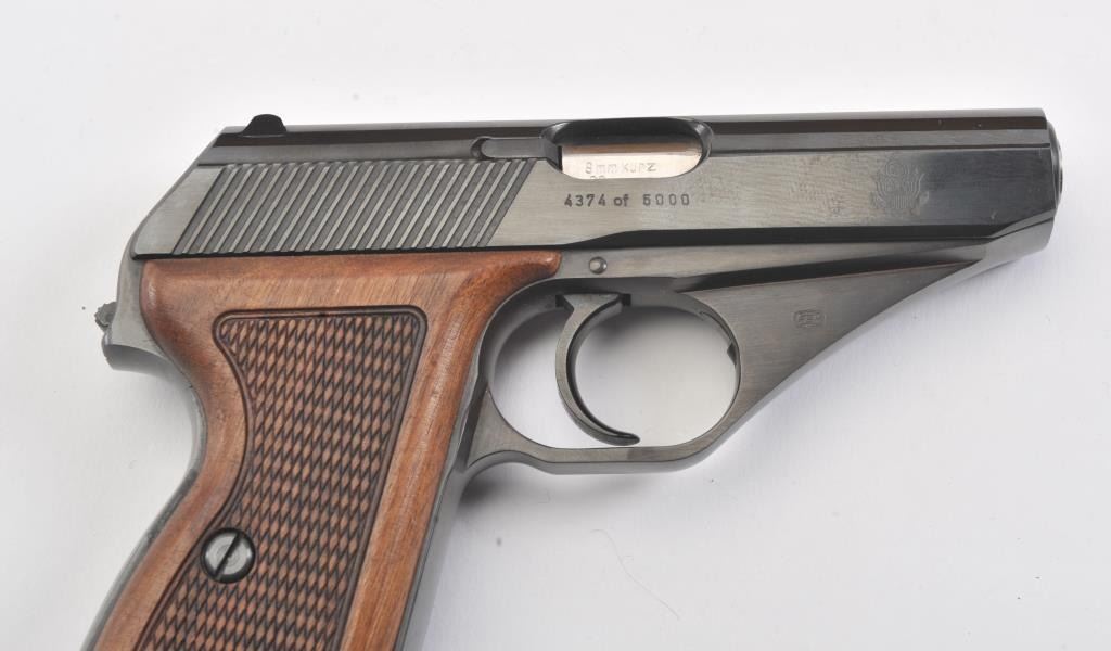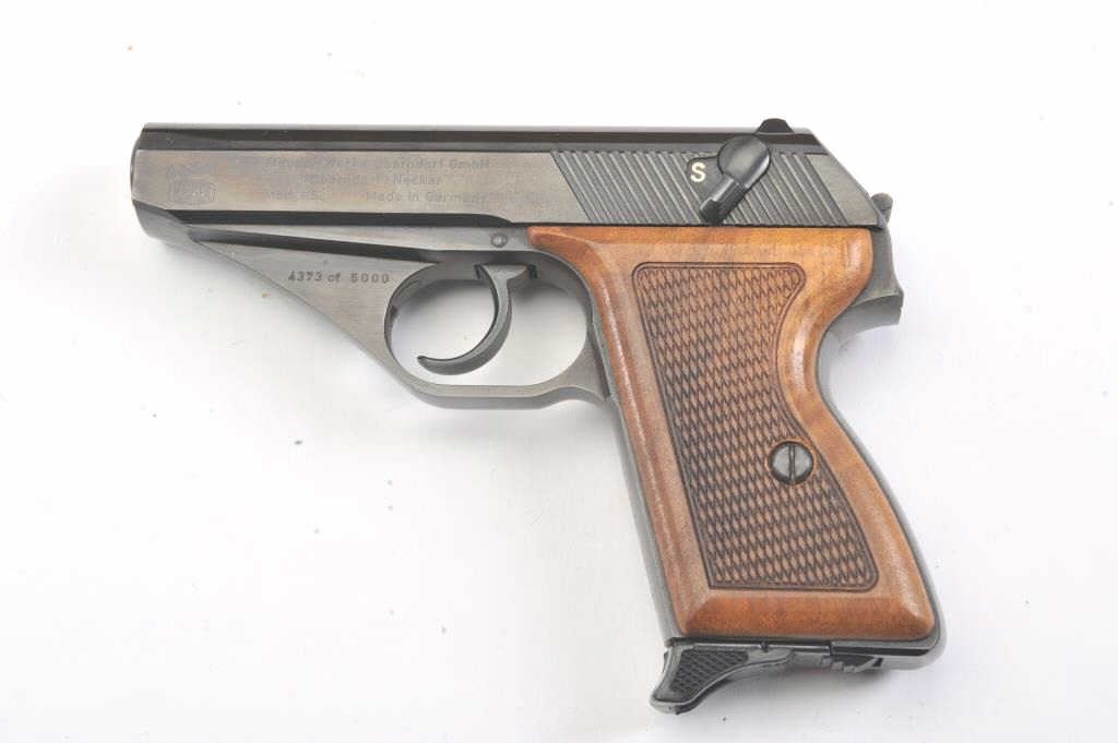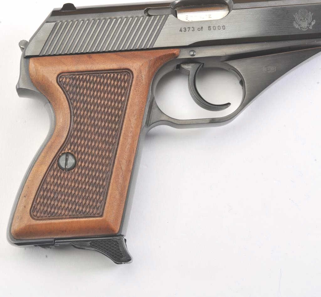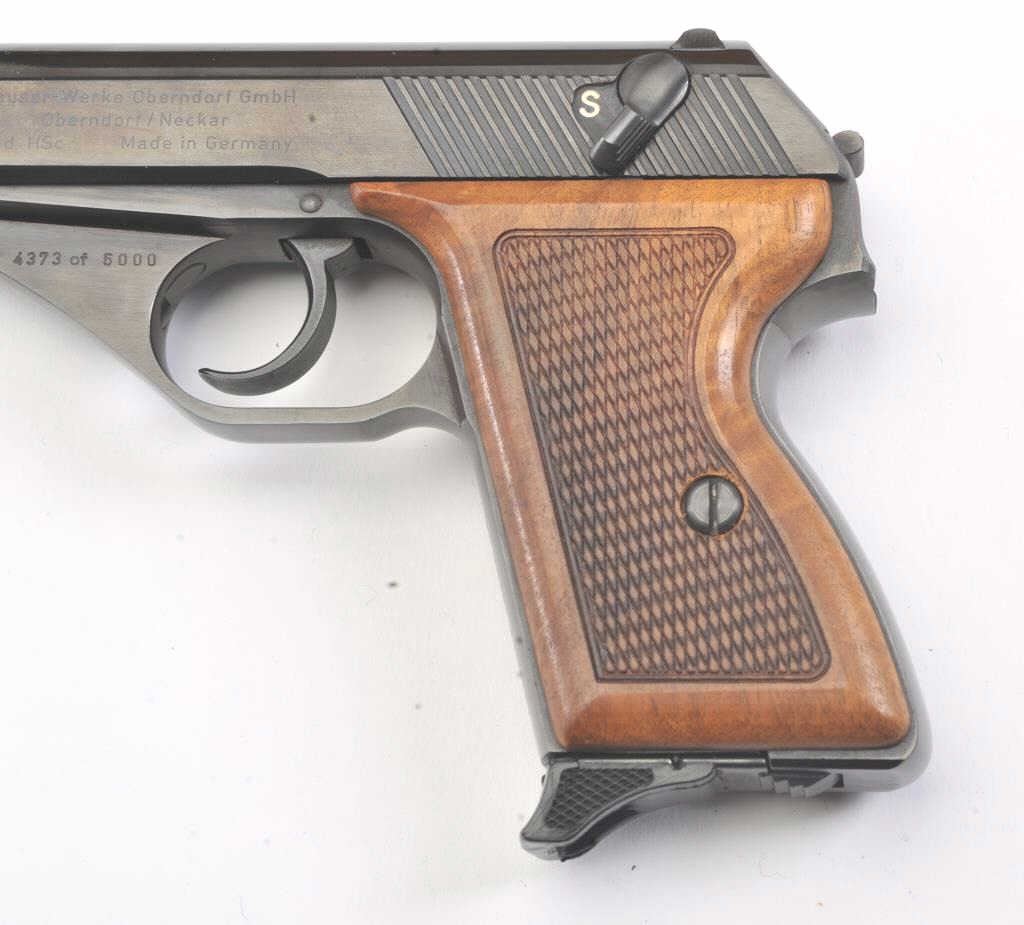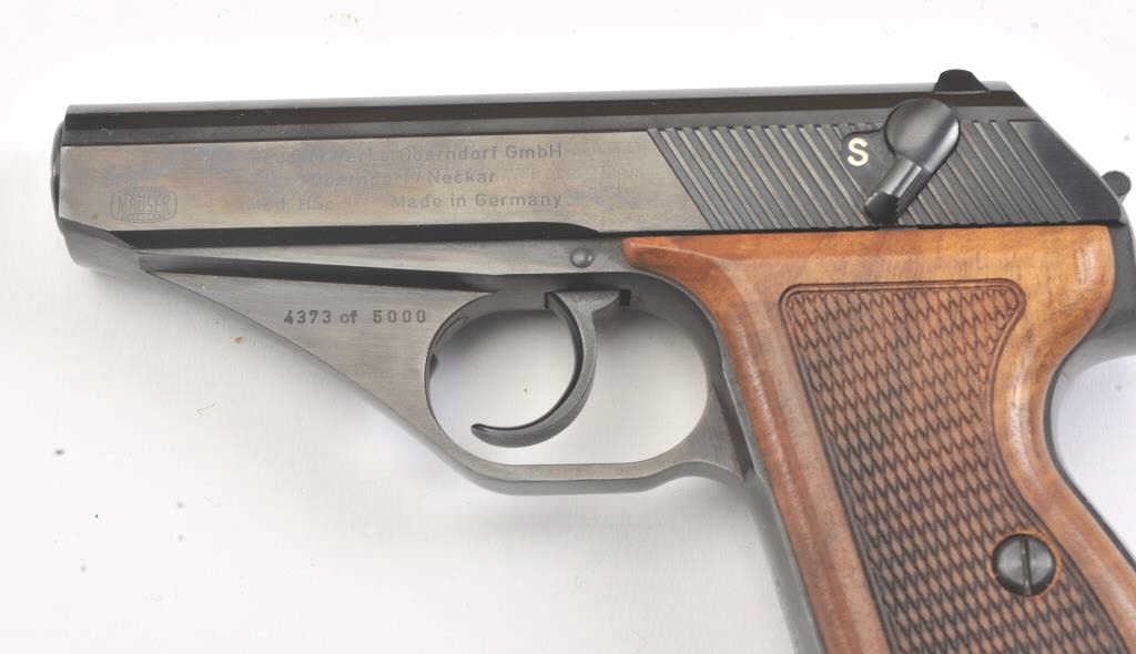 HSC American Eagle Edition 1 of 5000 cased pair of consecutively numbered Mauser HSc .380 caliber semi-automatic pistols. The lot includes #4373 and #4374 in a wooden presentation case with gold velvet interior. The Oberndorf marked pistols are both in excellent condition with the Mauser banner on the left side and American Eagle on the right, marked made in Germany. The checkered wood grips are also in excellent conditionshowing little use and the pistol is import marked on the grip strap. The lot includes four correct, Mauser marked magazines. The wooden presentation case is in good condition with mars and scratches and a small lateralcrack in the lid. Est.: $1,250-$2,500. (Modern/PPT).