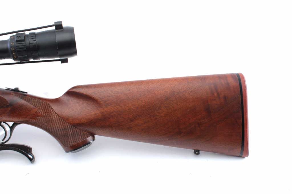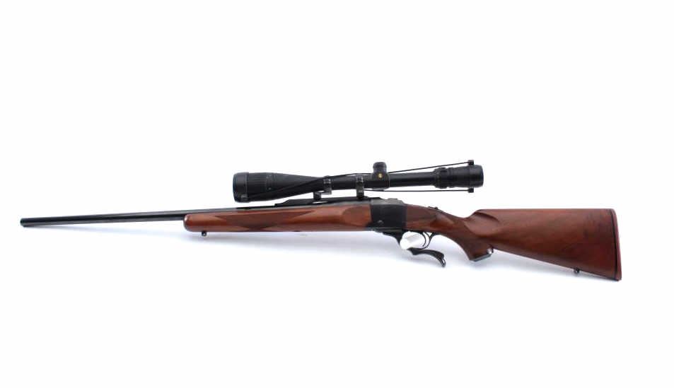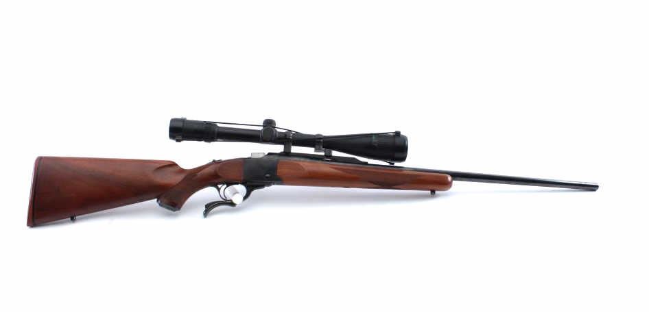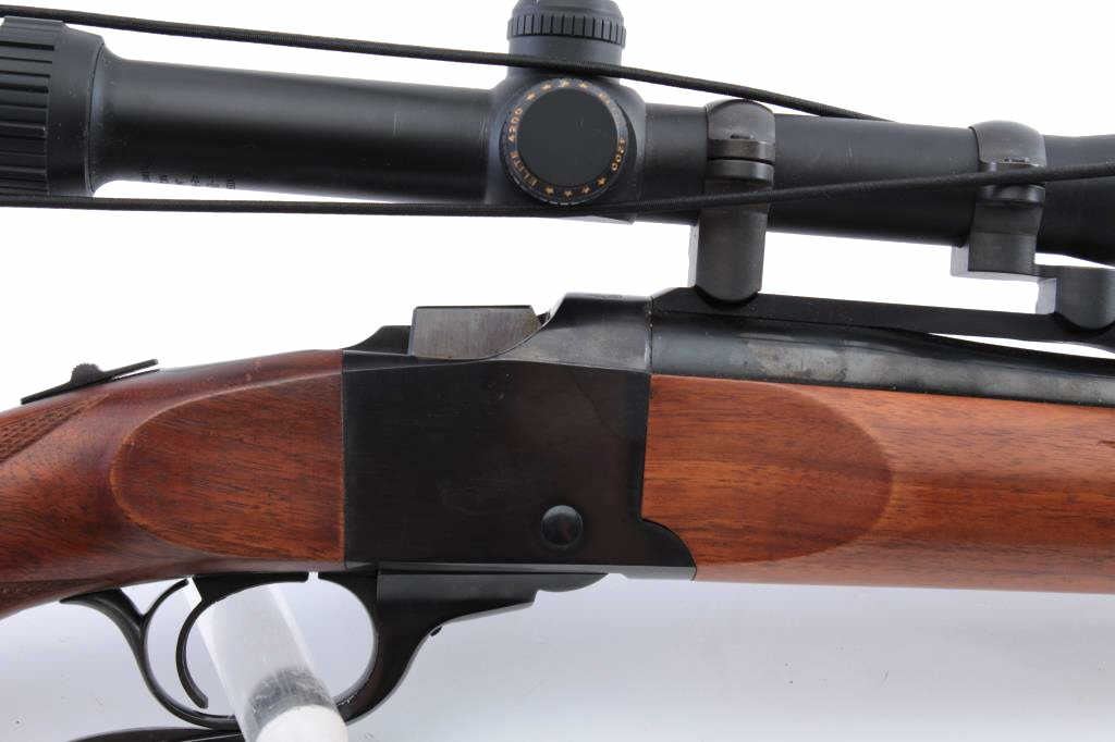 Ruger No. 1 single shot rifle, 6mm REM. caliber, 26” barrel, blued finish, checkered wood stocks, S/N 7808; mounted with a Bushnell Elite 4200 scope displaying crisp optics; rifle is overall fine condition withmajority of blued finish remaining, fine bore, crisp action, sharp markings and fine wood. (Modern). Est.: $600-$1,200.