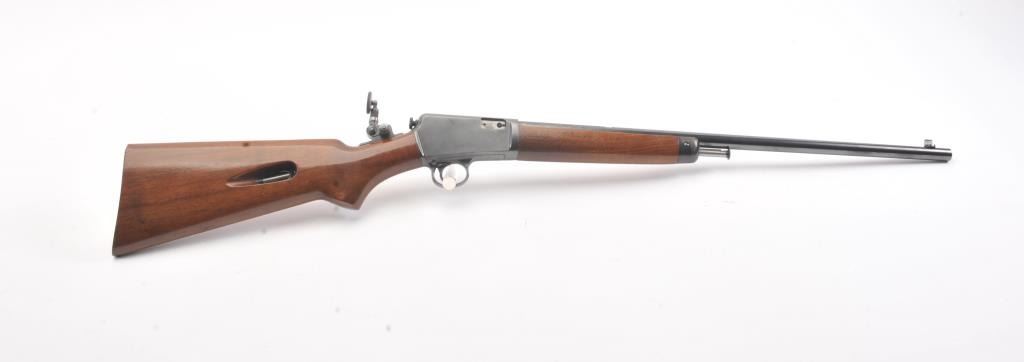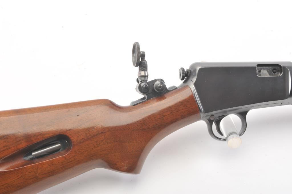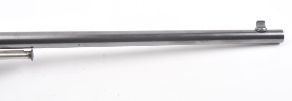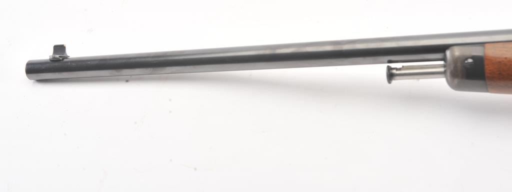 Winchester 63 .22 Semi-Auto rifle marked for Super Speed and Super X with a 20” barrel, S/N 3962. Near fine original condition with 96%-99% original blue with slight flaking on the fore end cap only. The wood is almostfine with minor crack in the left forearm. Adjustable windage and elevation period tang sight with high white dot front in factory dovetail. The bore is excellent. A 9.5 on a 1-10 scale. Est.: $750-$1500