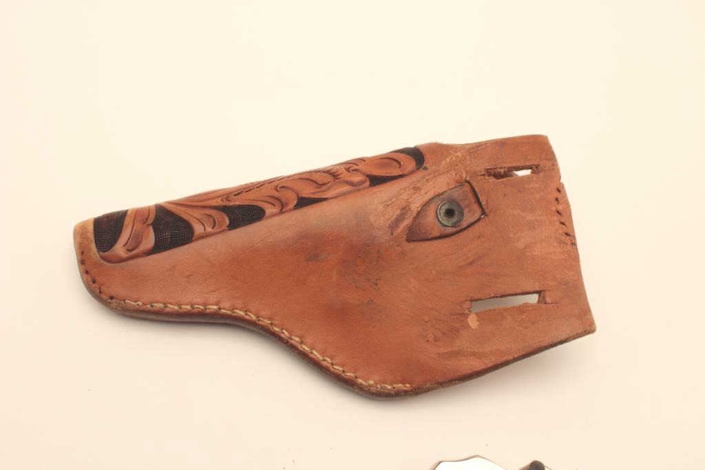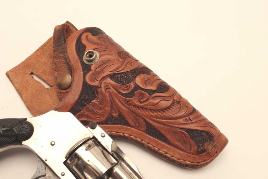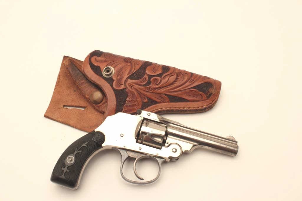 Forehand & Wadsworth 1901 hammerless with carved holster in very good condition. Gifted by Mrs. Zane Gray and property of her husband who was a famous western author who lived in Newport Beach, California. . (C&R/No PPT) Est.: $1000-$2000
