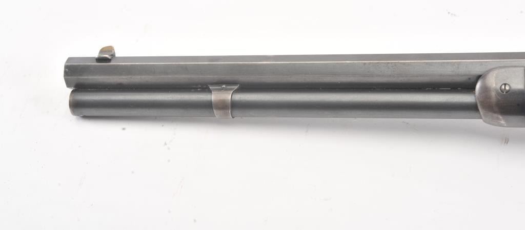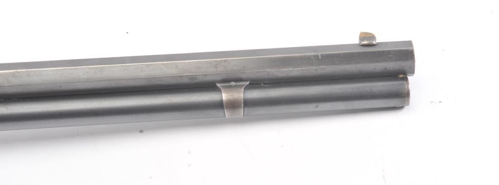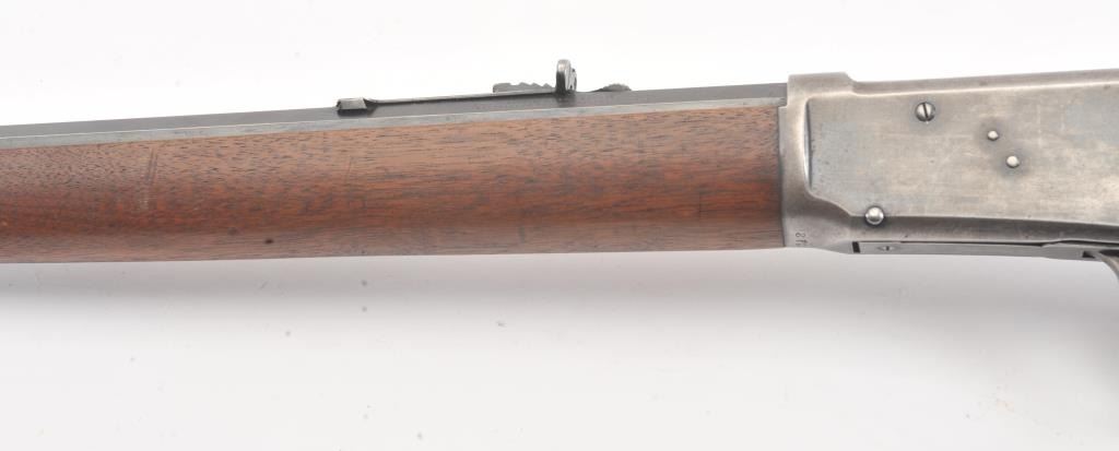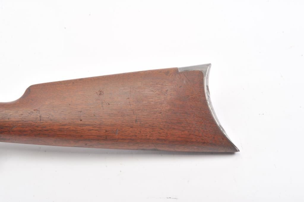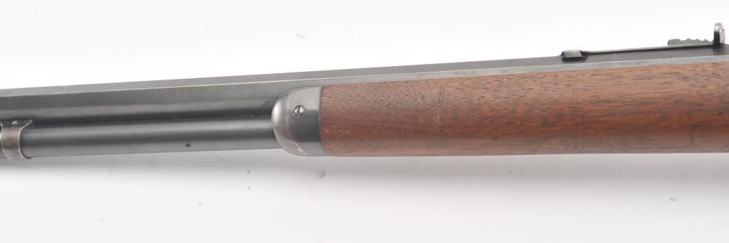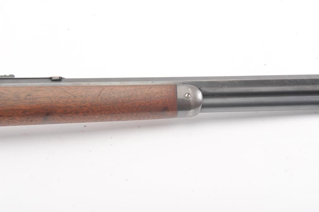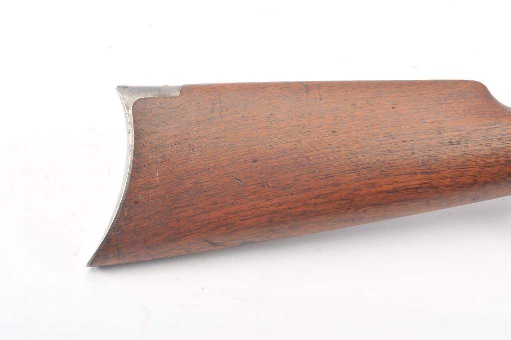 Winchester Model 1894 short rifle, #337012, .25-35 WCF cal., 20" octagon barrel, buckhorn sights, with crescent butt. Rifle is in very good plus condition overall, retaining approximately 80% original finish. The woodis very good, the stock had two holes drilled for sling swivels which have been filled. The bore is good, with good rifling, some minor corrosion. The action is good. Manufatured in 1906. (Modern) Est.$1250-2500