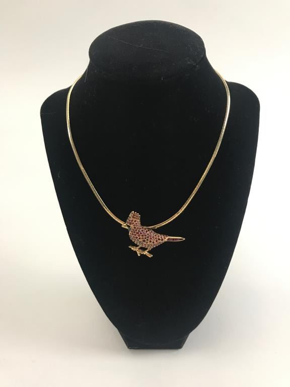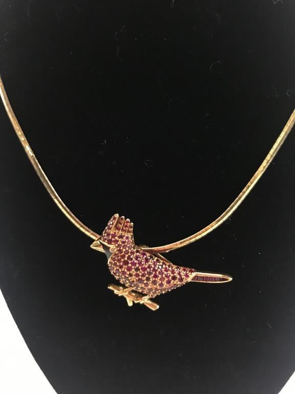 Ruby and diamond bird slider pendant by Oscar Heyman Americas foremost Jeweler in 18k yellow gold signed and numbered with omega chain Est:$10000-20000