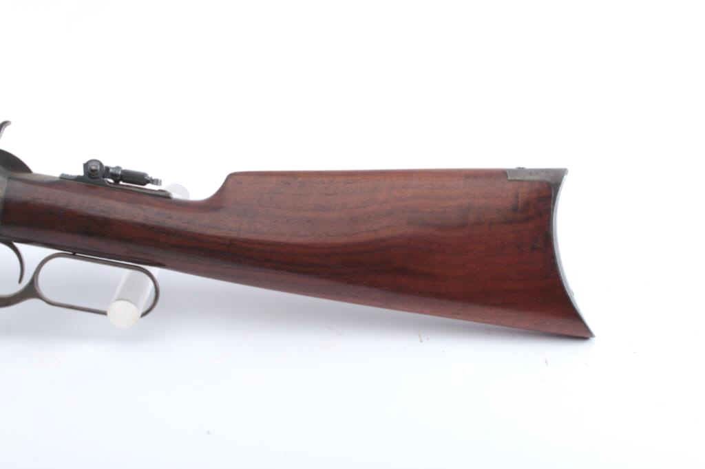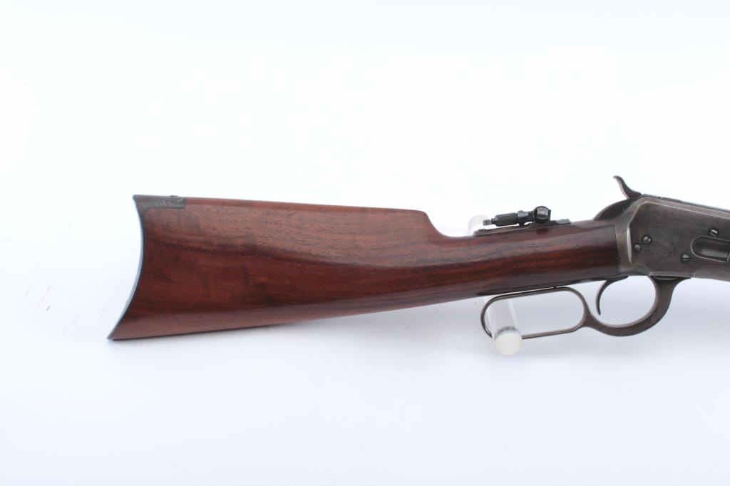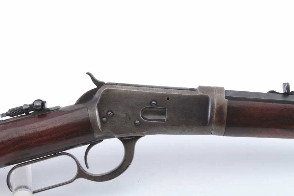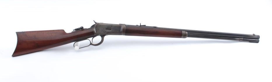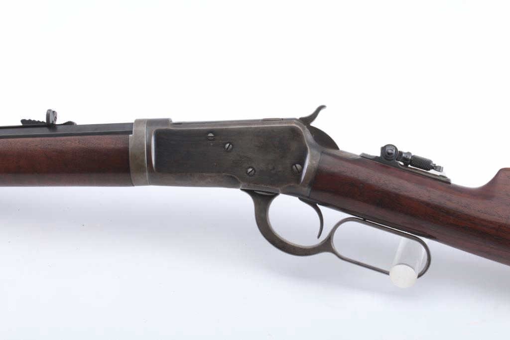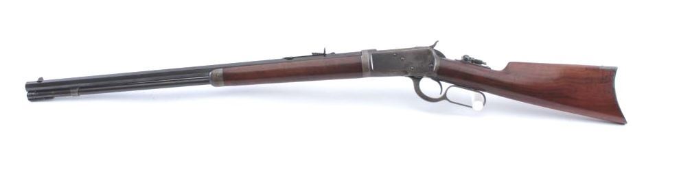 Winchester Model 1892 lever action takedown rifle, .25-20 caliber, 24” octagon barrel, blue finish, special wood stocks, rifle butt, adjustable period tang sight, Serial #163613. The rifle is in very good overallcondition showing considerable muted original blue finish, fine bore, crisp action and very good special wood stocks. The markings are sharp, the action is tight and the bore is good. Est.: $1,400-$2,800. (C+R).