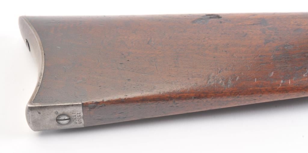 Original stock for Colt 3rd Model Dragoon martially marked and numbered 17305 & 17306. Two outstanding and fully visible cartouches marked "J.T." on the left and "W.A.T." on the right. Butt matches. Jaw and nut areauthentic and jaw is numbered 17347. The metal condition is good with light to moderate erosion and pitting. The stock is very good with dings, mars, scratches and dents. A very desirable dragoon accessoryespecially with cartouches (500 approximately made). From the well-recognized Gary Wiemann estate collection. (Antique) Est.: $6,000-$12,000