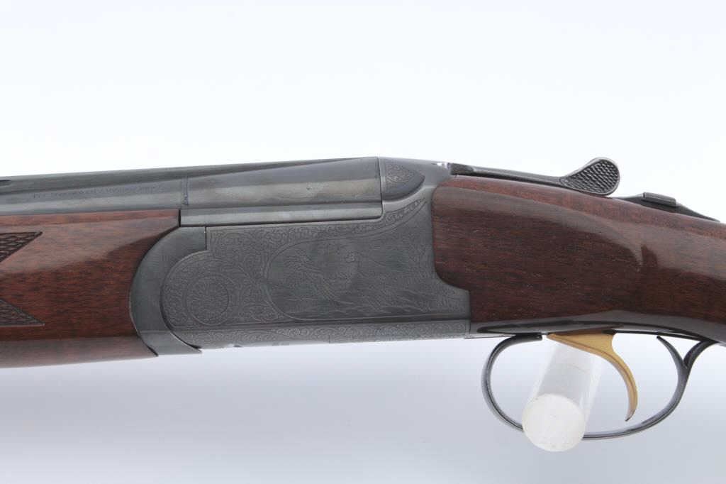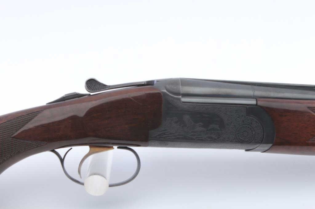 Verona LX 501 O/U shotgun, 28 gauge, Serial #141921. The shotgun is in fine overall condition with 26” barrels with a full-length ventilated rib and an ivory bead front sight. The shotgun retains nearly all of the blue finish with light engraving of games scenes on both sides of the receiver. The finely checkered wood stock is in very good condition and ends with a ventilated rubber pad providing a 14 ½” LOP to a singleselector trigger. The bores are good, the action is crisp and the markings are sharp. Est.: $400-$800. (Modern).