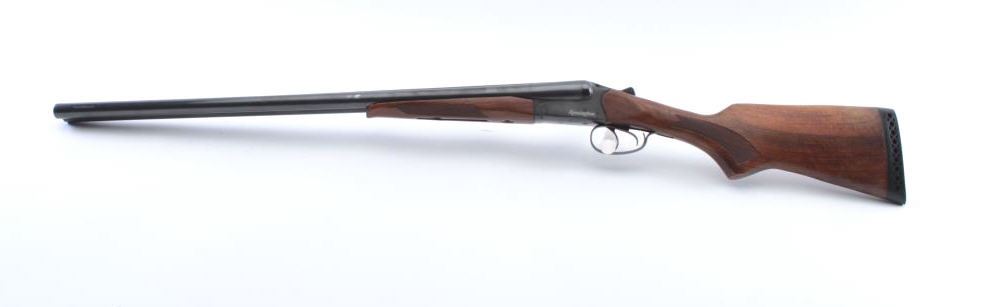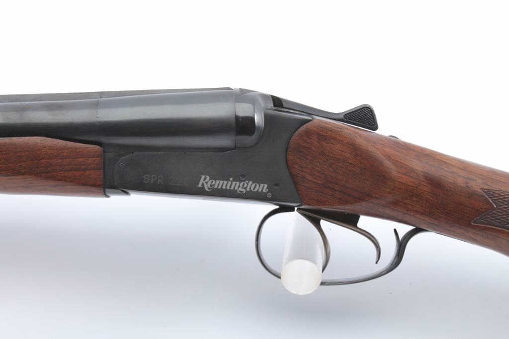Remington SPR 220 side by side shotgun by Baikal, 12 gauge, Serial #0741163R. The shotgun is in very good overall condition with 28 ½” barrels with a full-length filed rib. The shotgun retains nearly all of theblue finish with some thinning of the blue on the left barrel. The checkered wood stocks are in very good condition ending with a ventilated rubber pad providing a 14 ¼” LOP to the front trigger. The bores are good,the action is crisp and the markings are sharp. Est.: $200-$400. (Modern).
