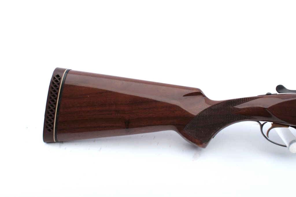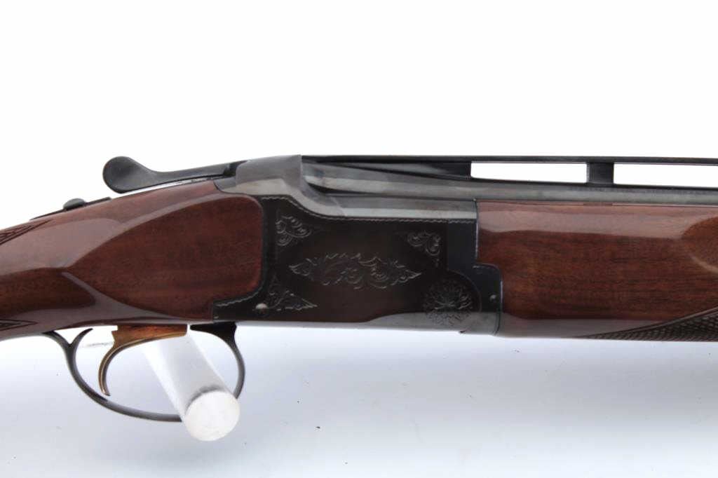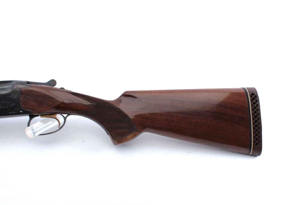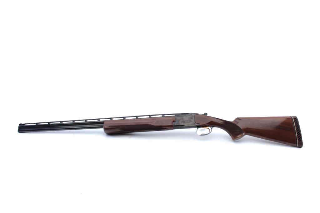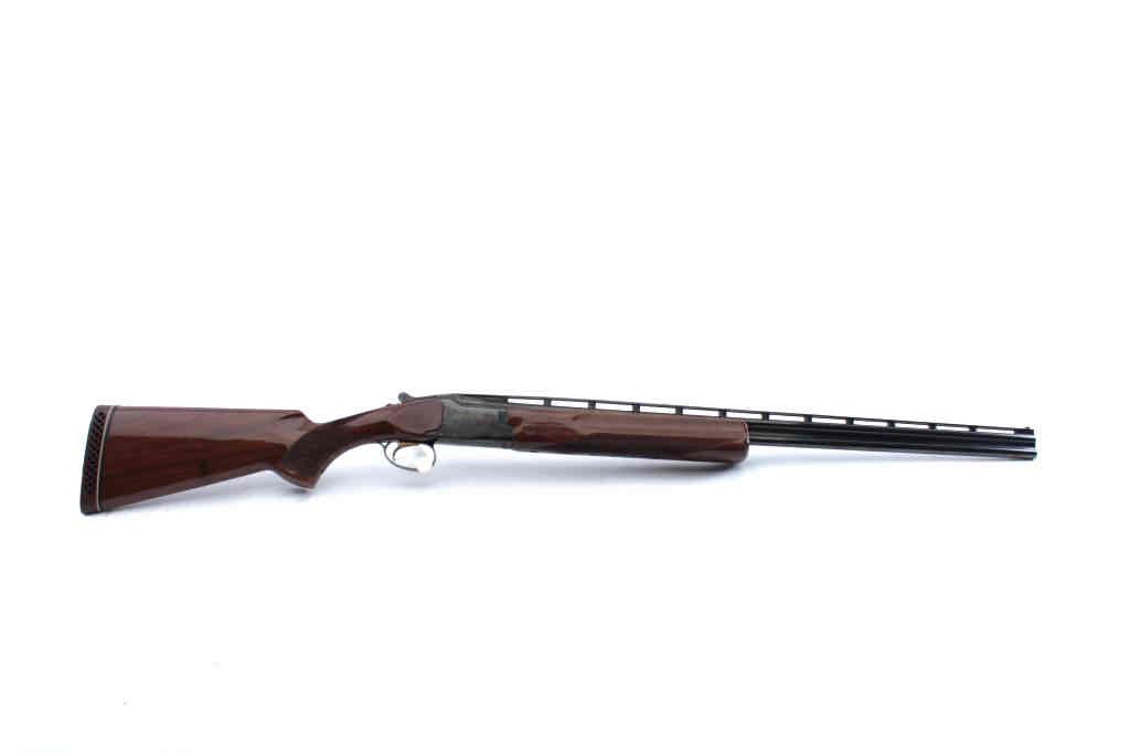 Browning Citori 410 gauge over and under shotgun, serial #19937PZ1F3. The gun has 28" barrels, ventilated rib, single trigger, choked skeet/skeet. The Citori is in fine to near excellent condition showing some minoruse, slight storage marks and we would rate it at 98-99% overall. Excellent bores, crisp action. Original hard rubber Browning butt and original full dimensions. Est.;$900-1800