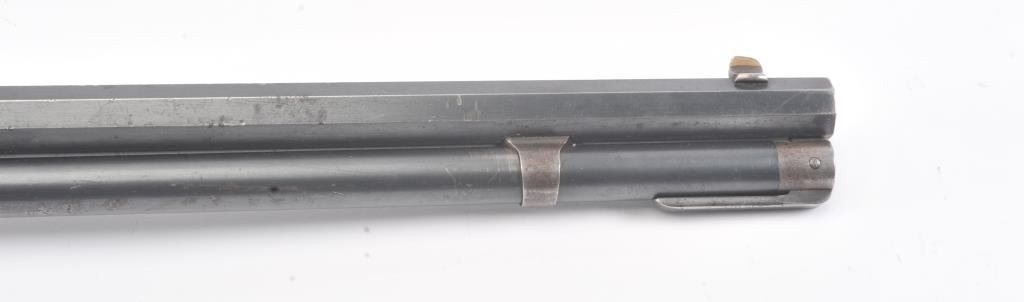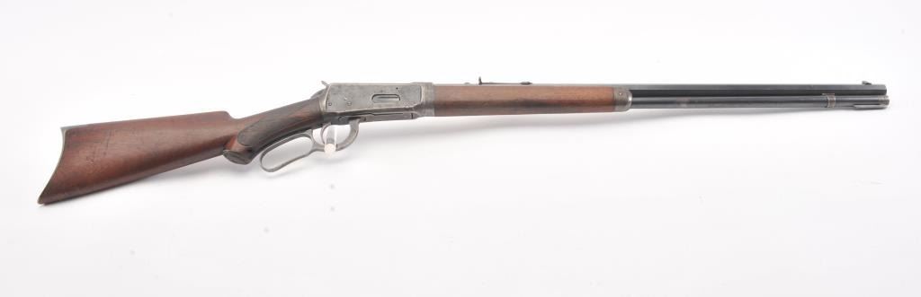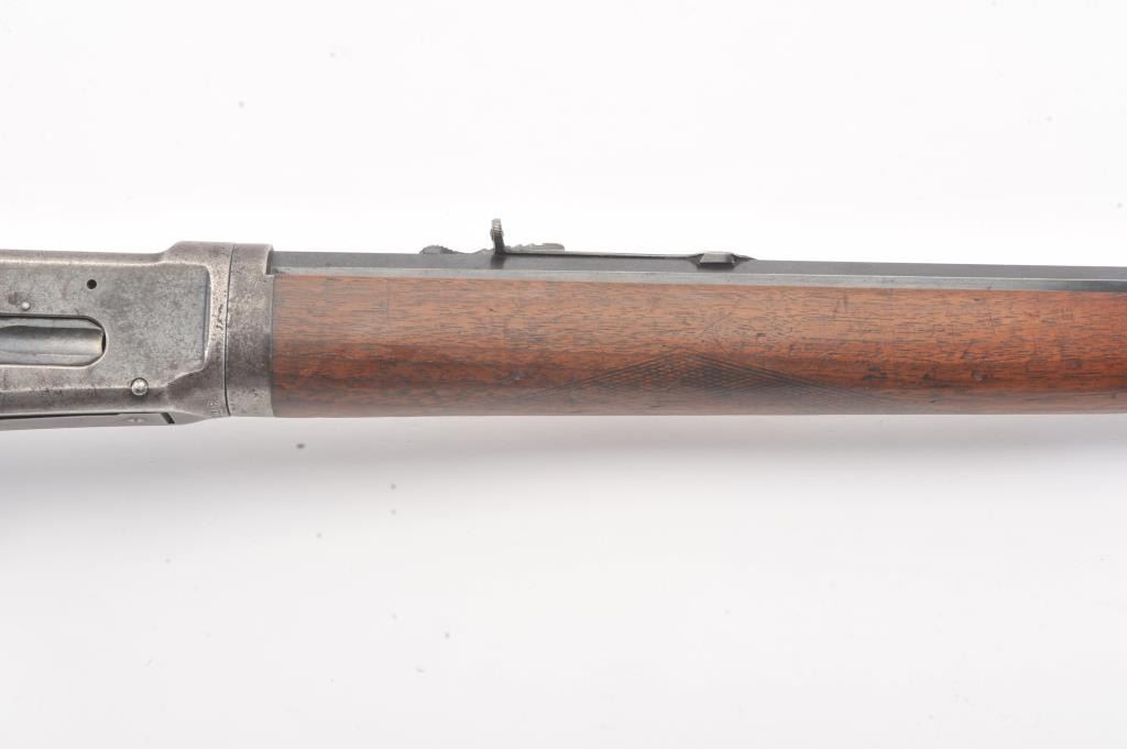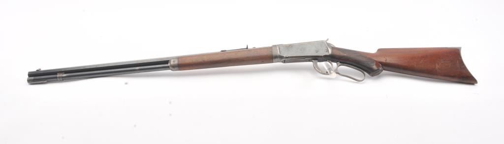 Special Order Winchester Model 1894 Takedown lever action rifle, .30 WCF caliber, Serial #372056. The rifle is in fine to nearly excellent overall condition with a 26” barrel with a full-length magazine, take downframe. The barrel and magazine retain 85%-90% of the blue finish with a Marble No.3 front and standard rear sights. The receiver shows a significant amount of thinning blue finish with brighter blue onthe bolt and loading gate. The hammer and lever show toning color case hardening. The pistol grip checkered wood stocks are in good condition with small mars and handling marks. The butt stock ends with a smoothsteel crescent butt plate. The bore is fair, the action is crisp and the markings are sharp on this desirable Special Order Model 1894 manufactured in 1906. Est.: $750-$1,500. (C+R).