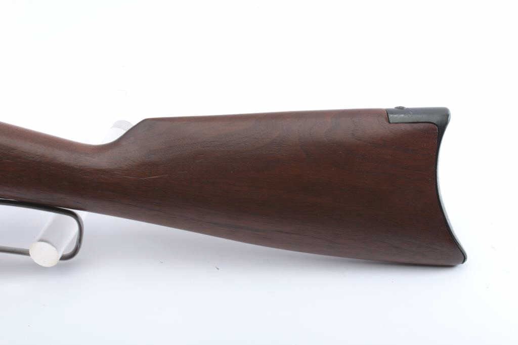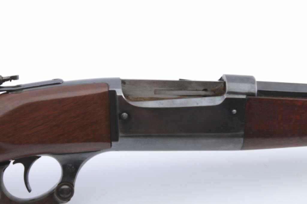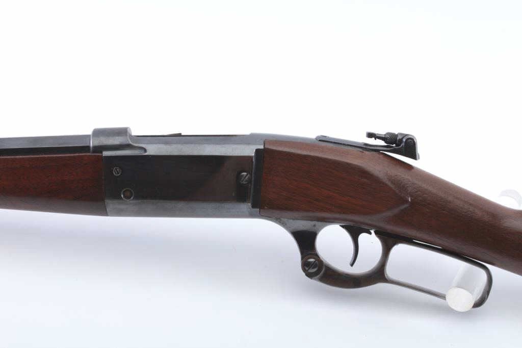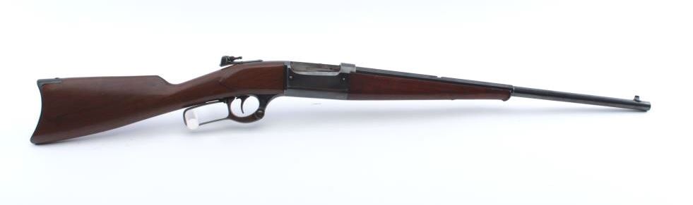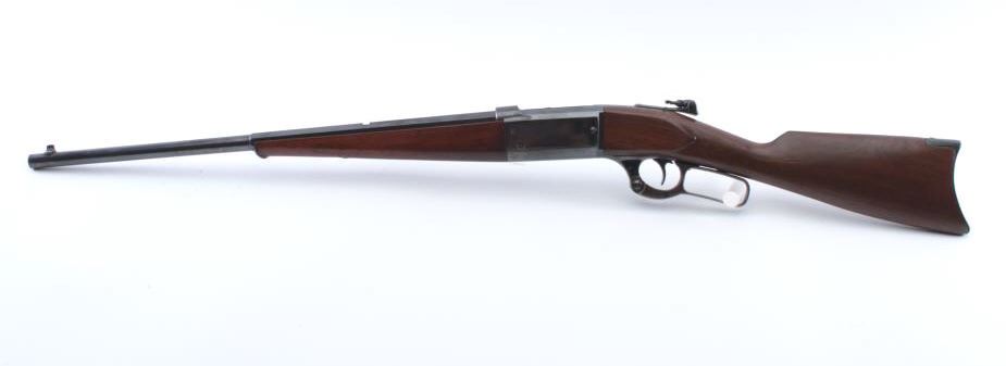 Savage Model 1899 lever action rifle, .25-35 caliber, Serial #47249. The rifle is in very good overall condition with a 22” ½ octagon to round barrel with a blade front sight and Savage No.21 adjustable rear sight. Thebarrel retains the majority of its blue finish with light wear at the muzzle and sharp edges. The receiver retains significant original blue finish particularly at the tang and under the lever. The rifle featuresa brass shell counter and shows vivid case hardening on the lever, particularly on the protected portion of the assembly. A period tang sight has been added. The smooth wood stocks are in good condition with some oilstaining on the fore end and the butt stock appears to have been re-finished, including the smooth steel butt plate. The bore is good, the action is crisp and markings are sharp on this nice Savage with the ½ octagonbarrel, manufactured in 1905. (C&R) Est.: $500-1000.