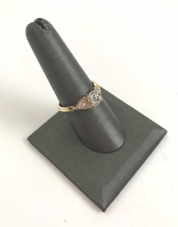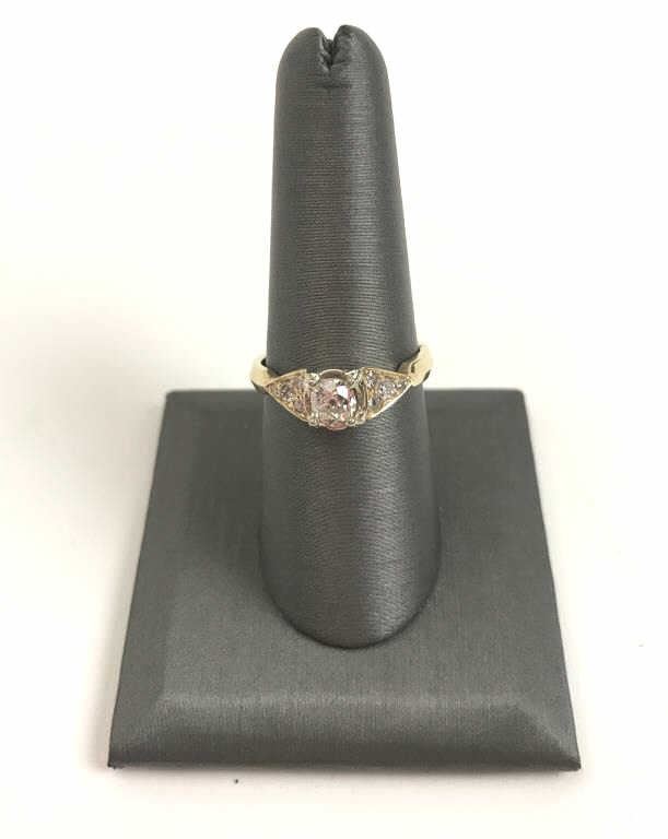 One vintage ring set with a old European cut 0.60ct center diamond and 8 side diamonds in 14k yellow gold Est$750-1500